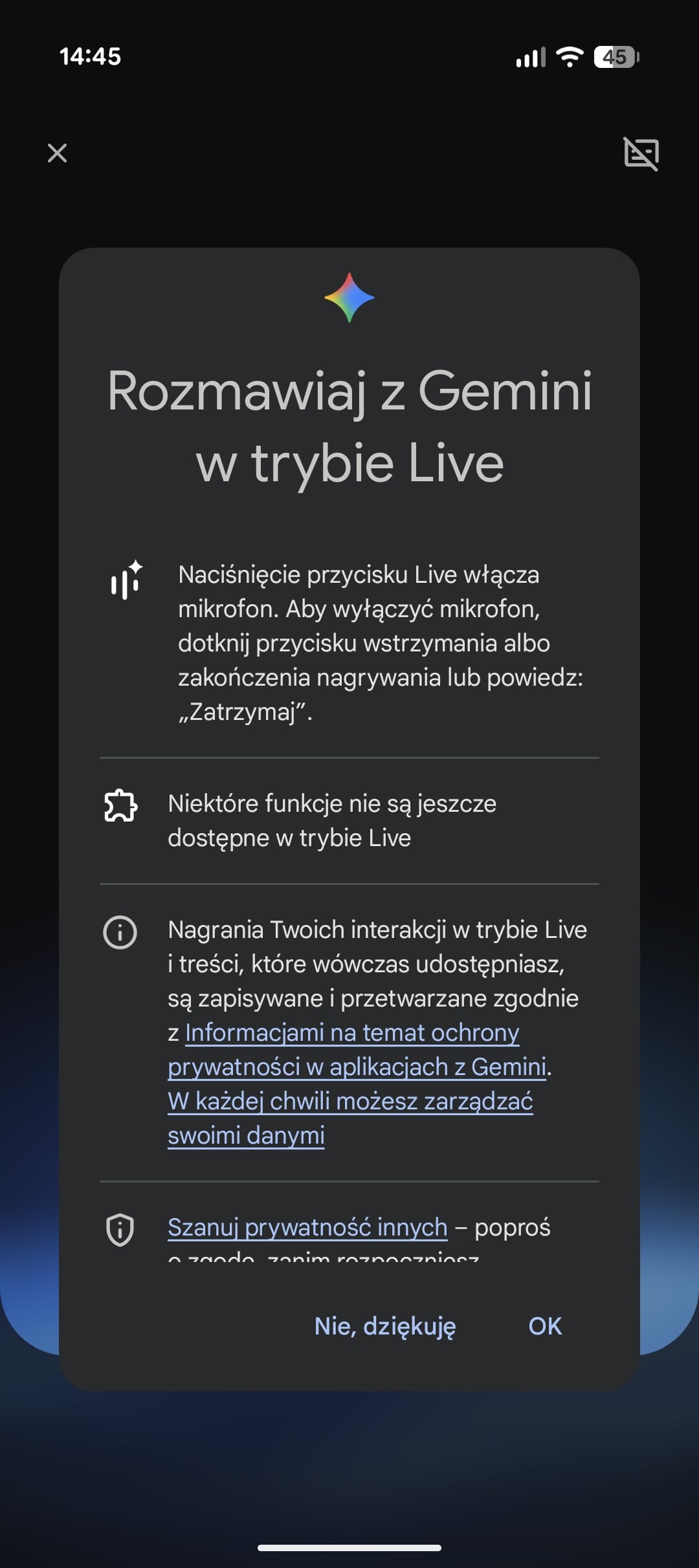 Oprócz tego można porozmawiać w języku naturalnym z Gemini Live. Przypominająca zwykłą konwersację rozmowa może nie jest tak płynna jak w przypadku ChatGPT, ale dzięki integracji z wyszukiwarką Google, łatwiej jest odszukać interesujące nas informacje.