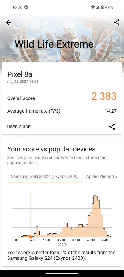 W moich rękach, Pixel 8a bez większych problemów był w stanie wytrzymać cały dzień użytkowania, od rana do wieczora, nierzadko nawet mając jeszcze nieco zapasu energii około północy. Wszystko jednak będzie zależało od naszego sposobu i intensywności używania urządzenia. Wyniki SoT (Screen on Time) nie należą do szalenie wybitnych, a są po prostu dobre lub poprawne.