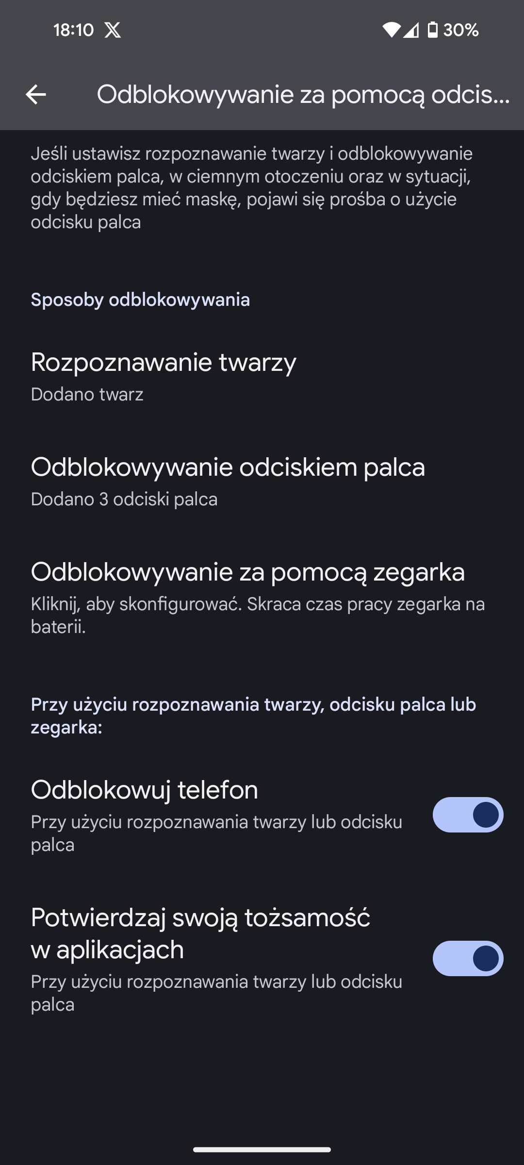 W kwestii dostępnych opcji blokady ekranu, Pixel 8a to klasyka gatunku. Do naszej dyspozycji jest zarówno czytnik linii papilarnych ulokowany w ekranie, jak i rozpoznawanie twarzy 2D, realizowane przednią kamerą.