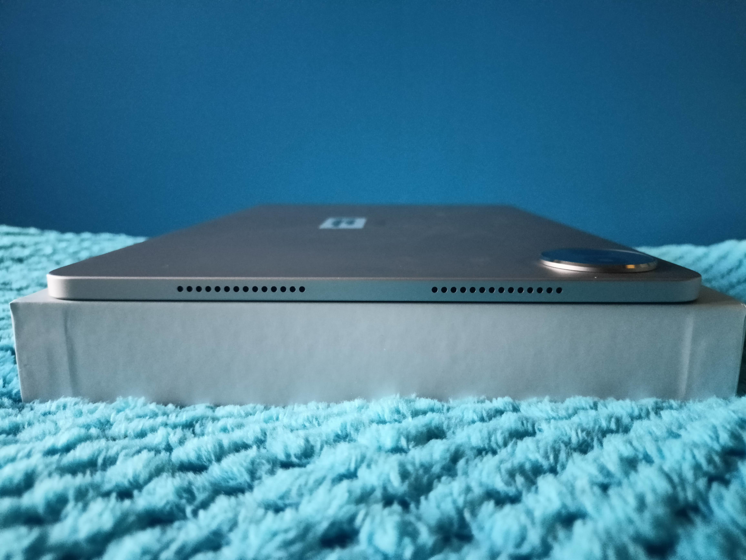 Jedyne, co mi się nie podoba, to wyspa fotograficzna. Po pierwsze dlatego, że wystaje (wprawdzie nieznacznie, ale jednak), przez co tablet nie leży idealnie na płasko. Po drugie: ze względu na jej umiejscowienie – zainstalowano ją tak, że praktycznie przy każdym wciśnięciu któregoś z fizycznych przycisków, dotyka się palcem obiektywu – no, nie jest optymalne, łagodnie mówiąc. Szczególnie że aparat z tyłu tabletu jest w mojej opinii czymś absolutnie zbędnym, co dopiero przy 12 calach.