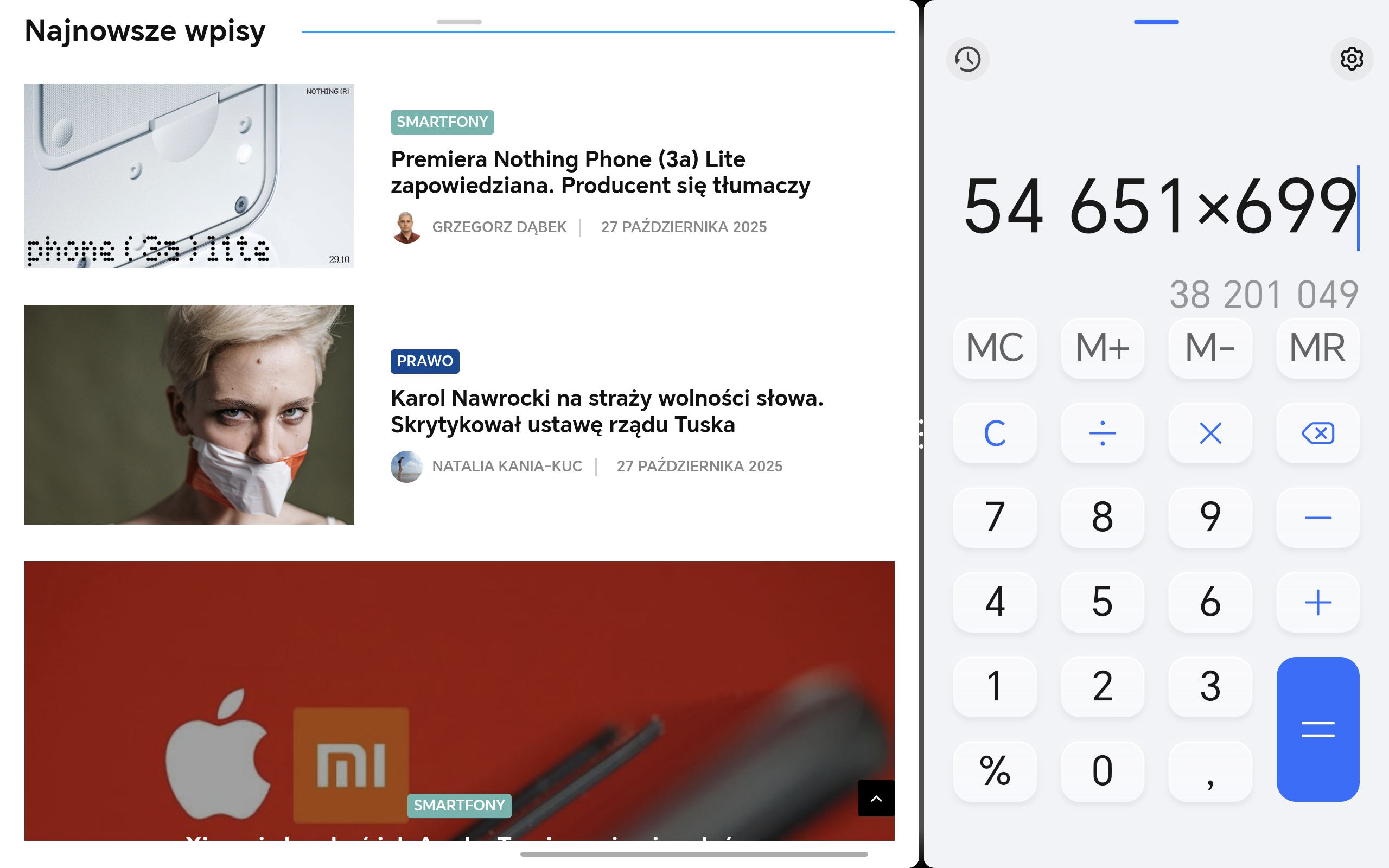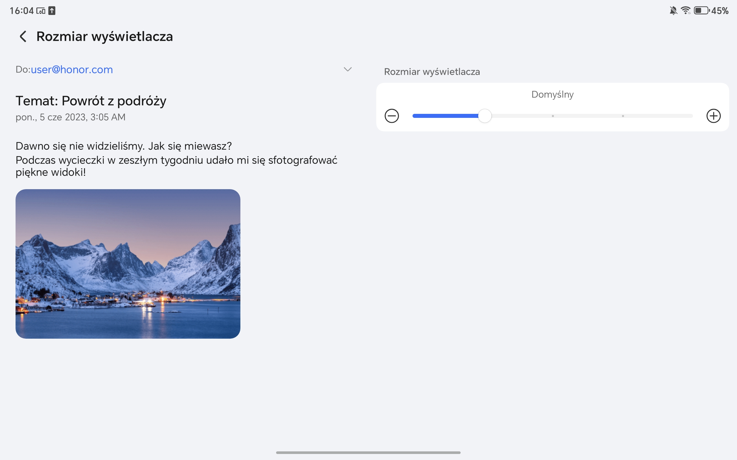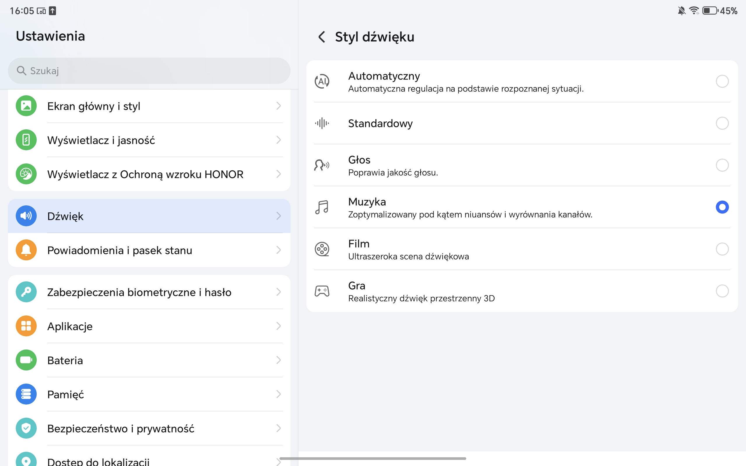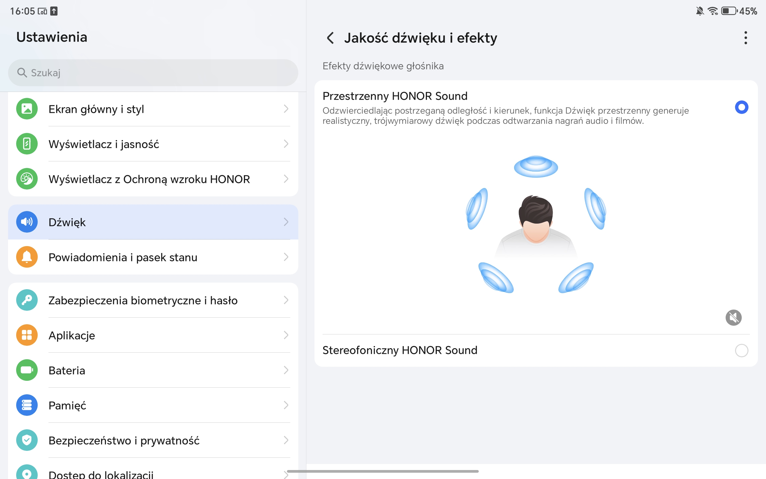 Honor Pad 10 ma spory, bo 12,1-calowy wyświetlacz. Cechuje go wysoka rozdzielczość (2560×1600 pikseli), a system pozwala dobrze wykorzystać tak dużą przestrzeń roboczą (mam tu na myśli rozmaite opcje dzielenia ekranu, o których szerzej wspominam w dalszej części recenzji).