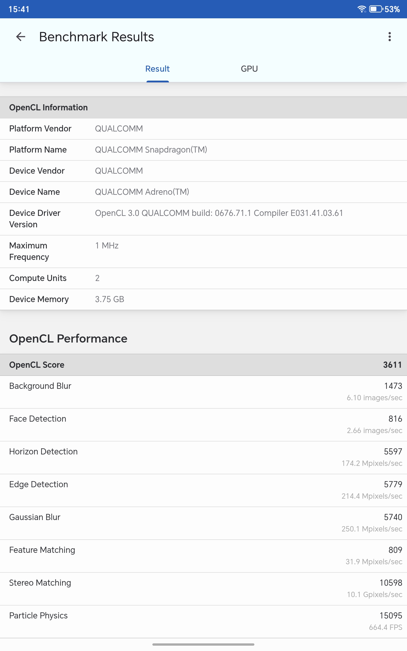 - GPU OpenCL: 3611
