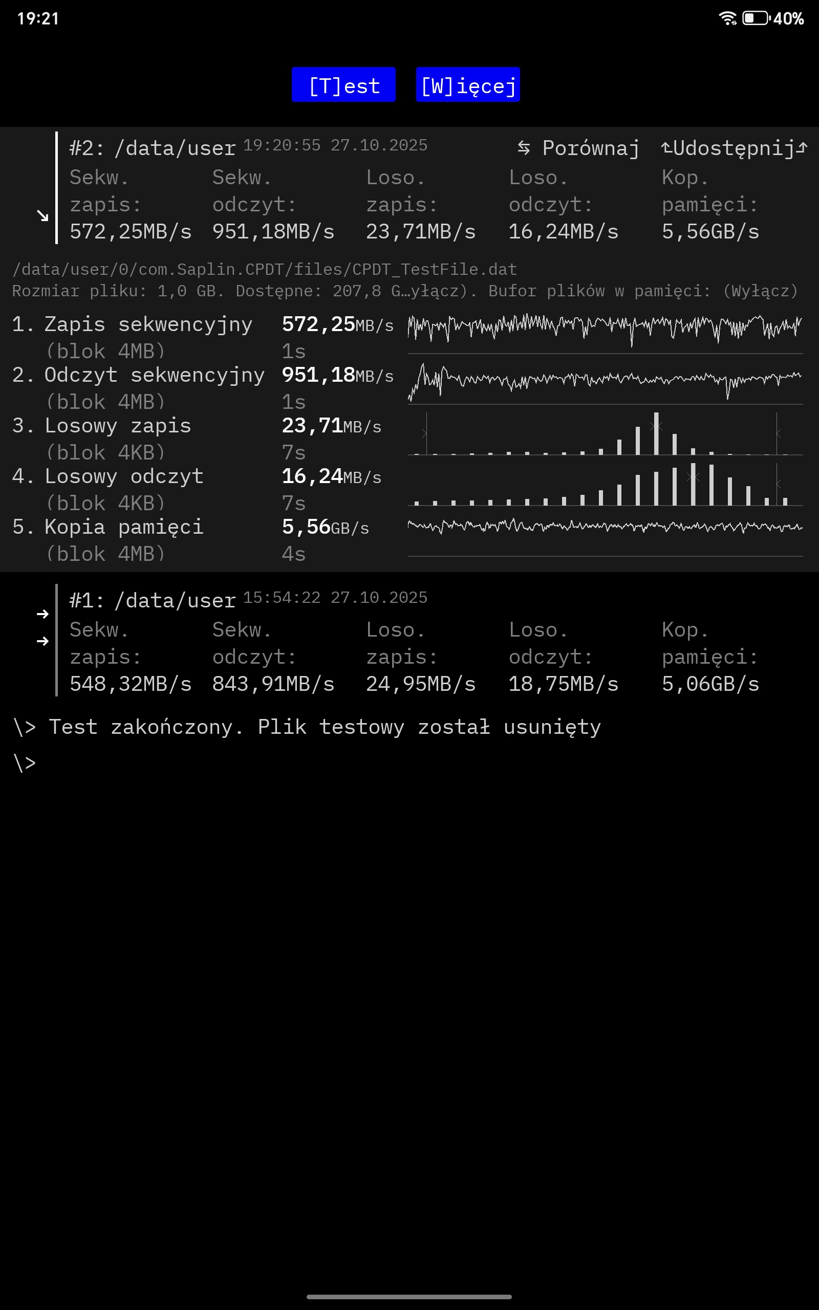 - Odczyt sekwencyjny: ~900 MB/s