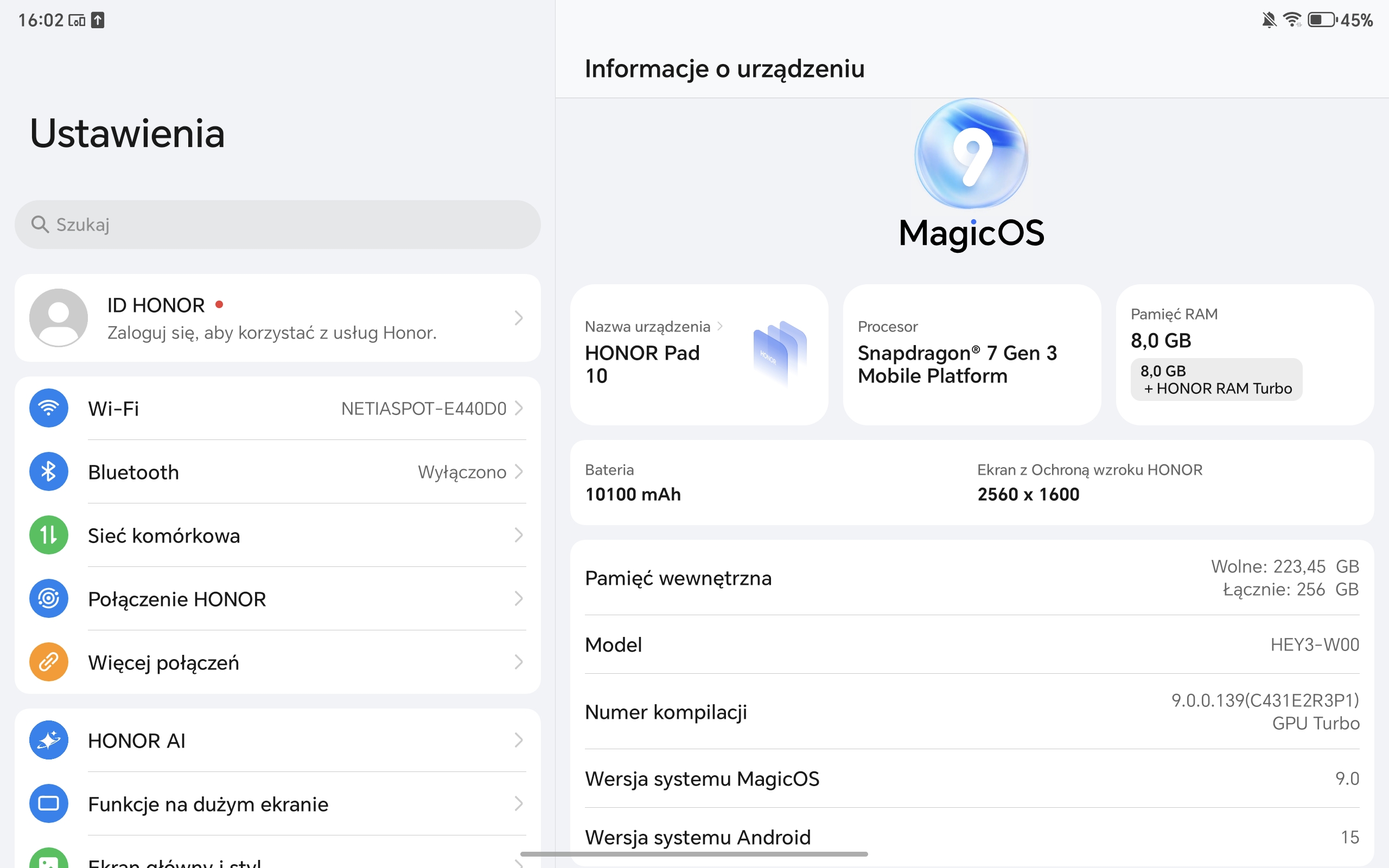 Honor Pad 10 działa w oparciu o system Android 15, ale nie czysty, bo producent narzuca na niego własny MagicOS w wersji 9.0. Całość działa płynnie i wygląda bardzo dobrze, a zastosowane rozwiązania zdecydowanie sprzyjają produktywności.