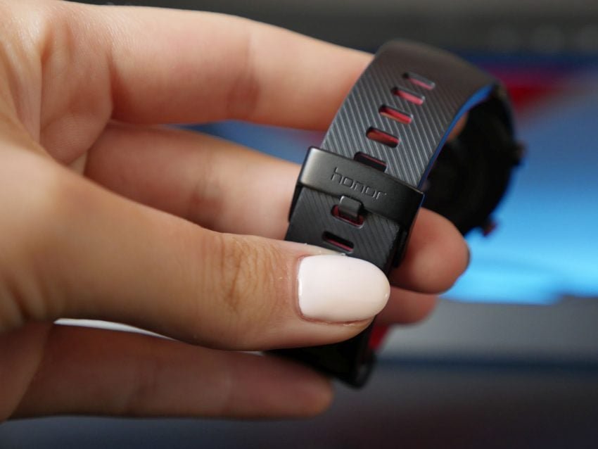 Nie sądziłam, że będę zachwycała się paskiem od zegarka, ale faktem jest, że ten z Honora Watch Magic jest po prostu fajny. Jest to przyjemna w dotyku guma, która dobrze też leży na ręce. W dodatku jest czerwono-czarna (czarna na zewnątrz, czerwona w środku), a takie połączenie zawsze świetnie wygląda – zwłaszcza, gdy dodamy do tego inne czerwone detale, jak napis na kopercie czy obramówka jednego z przycisków.