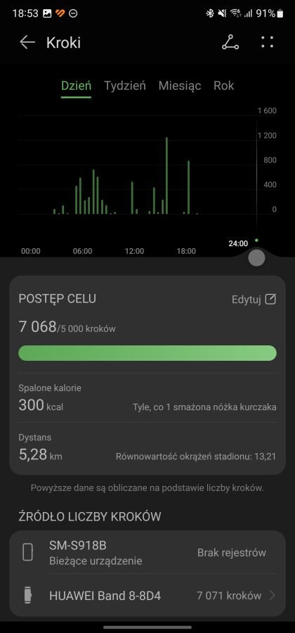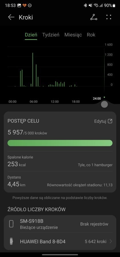 Monitorowanie aktywności to nieco bardziej skomplikowany temat. Opaska, jak każdy smartband, liczy kroki. Pytanie jednak jak dokładnie to robi. Tak się złożyło, że podczas testów miałam do dyspozycji jeszcze smartwatch Huawei Watch 4 Pro, więc mogłam porównać jak oba urządzenia sobie radzą.