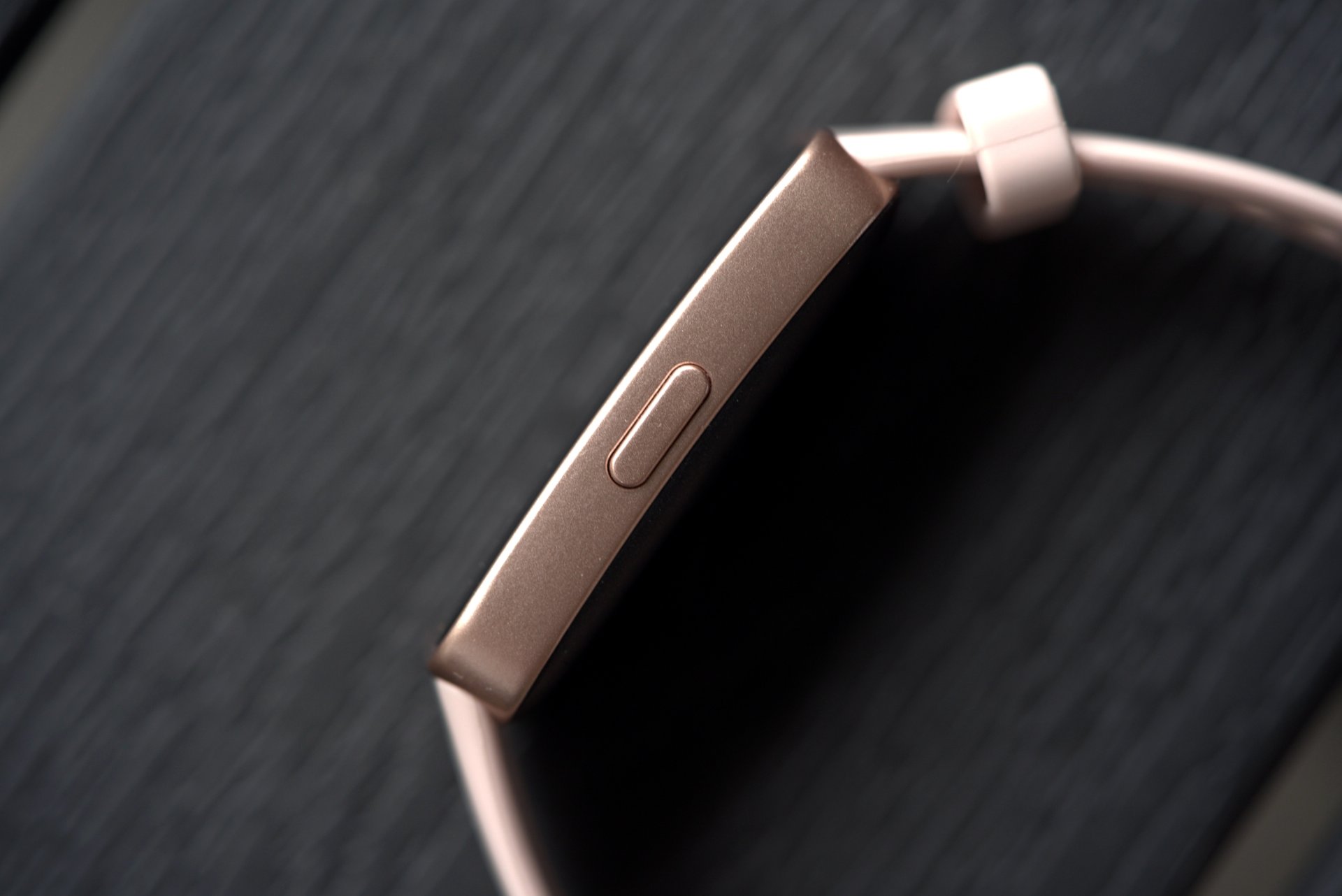 Krawędzie opaski na pierwszy rzut oka mogą wyglądać na aluminiowe, ale niech Was pozory nie zmylą – są plastikowe. Na nich znajdziemy tylko jeden przycisk. Ten umieszczony jest po prawej stronie i służy jako włącznik oraz przejście do ekranu domowego.