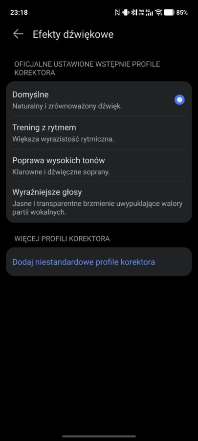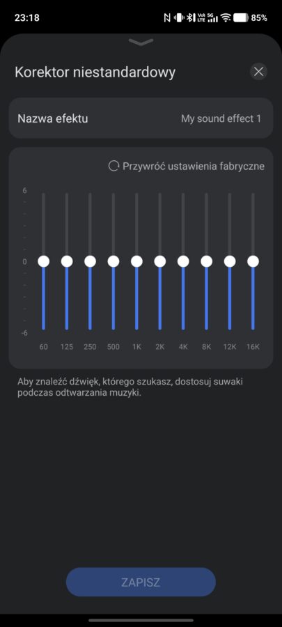 Reszta elementów wygląda już bardzo podobnie. Z oczywistych względów, zabrakło tu przełączników od ANC i trybu kontaktu, inaczej wygląda też sam korektor dźwięku. Zawiera on bowiem tylko cztery gotowe presety brzmienia, ale pozwala również stworzyć własne, przy wykorzystaniu 10-zakresowego equalizera.