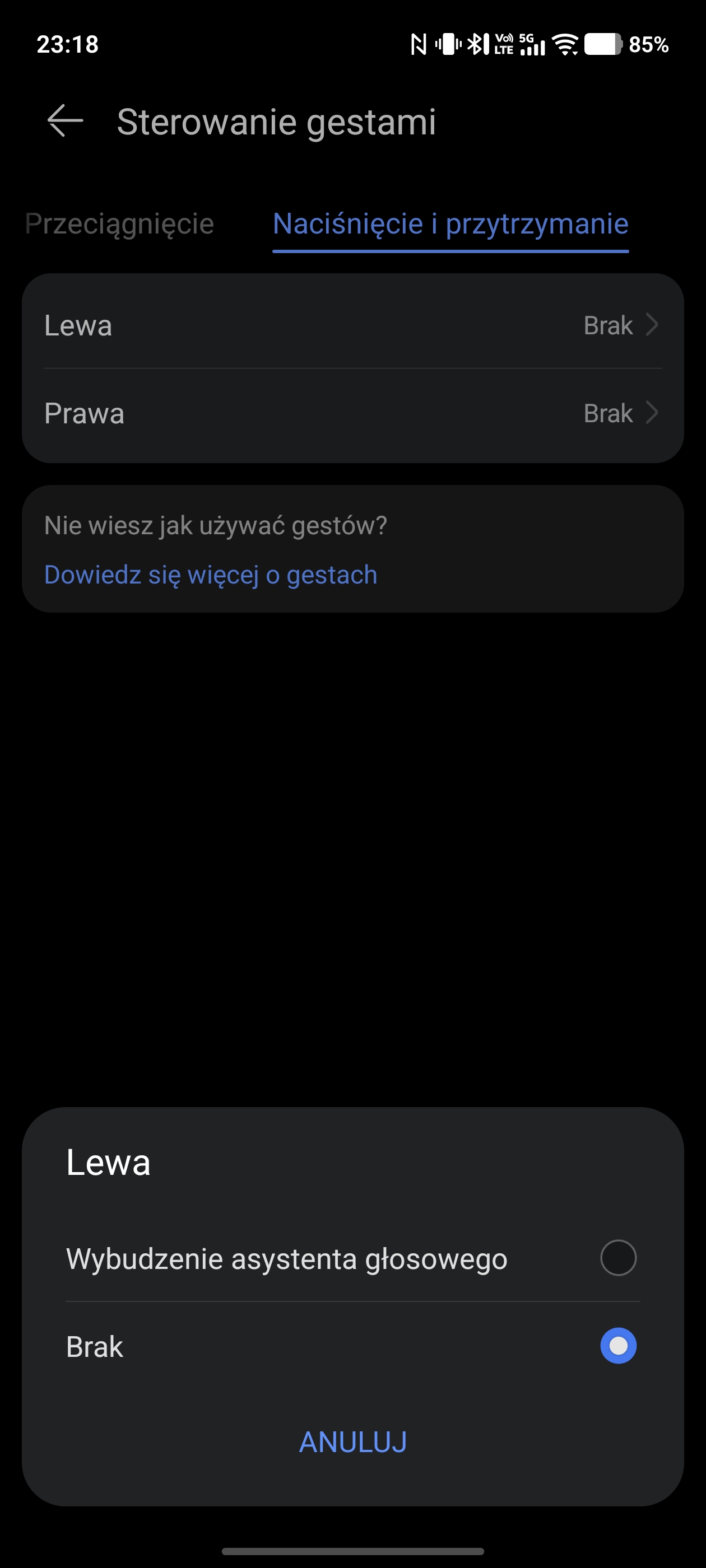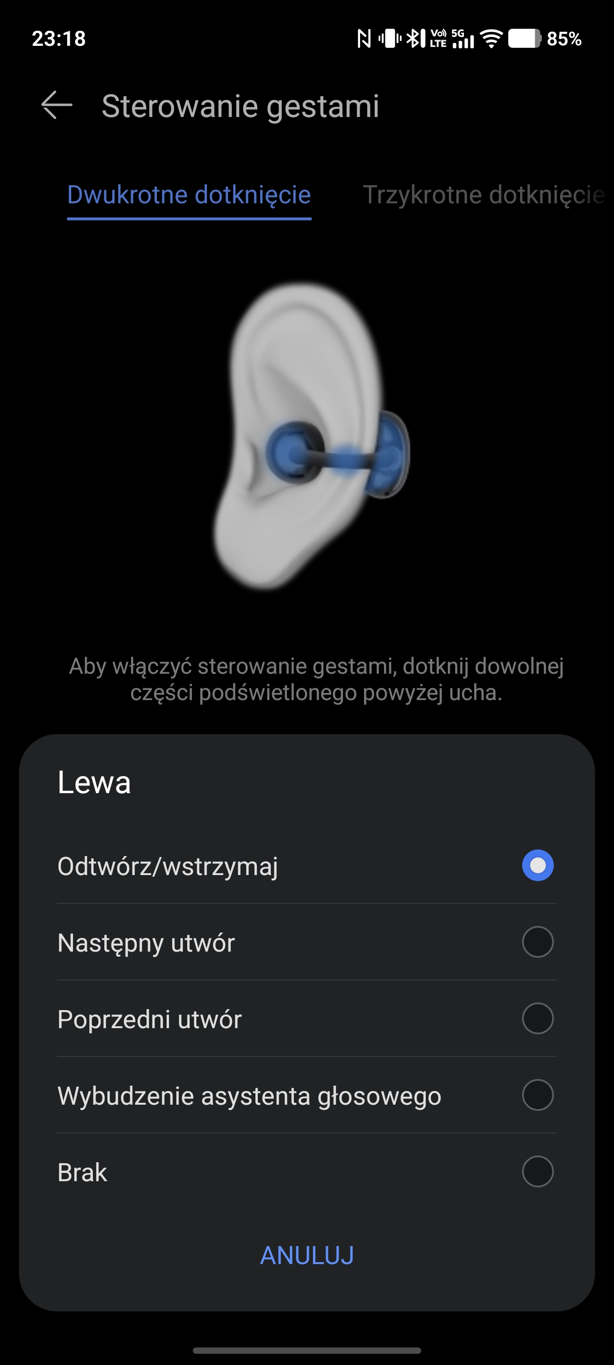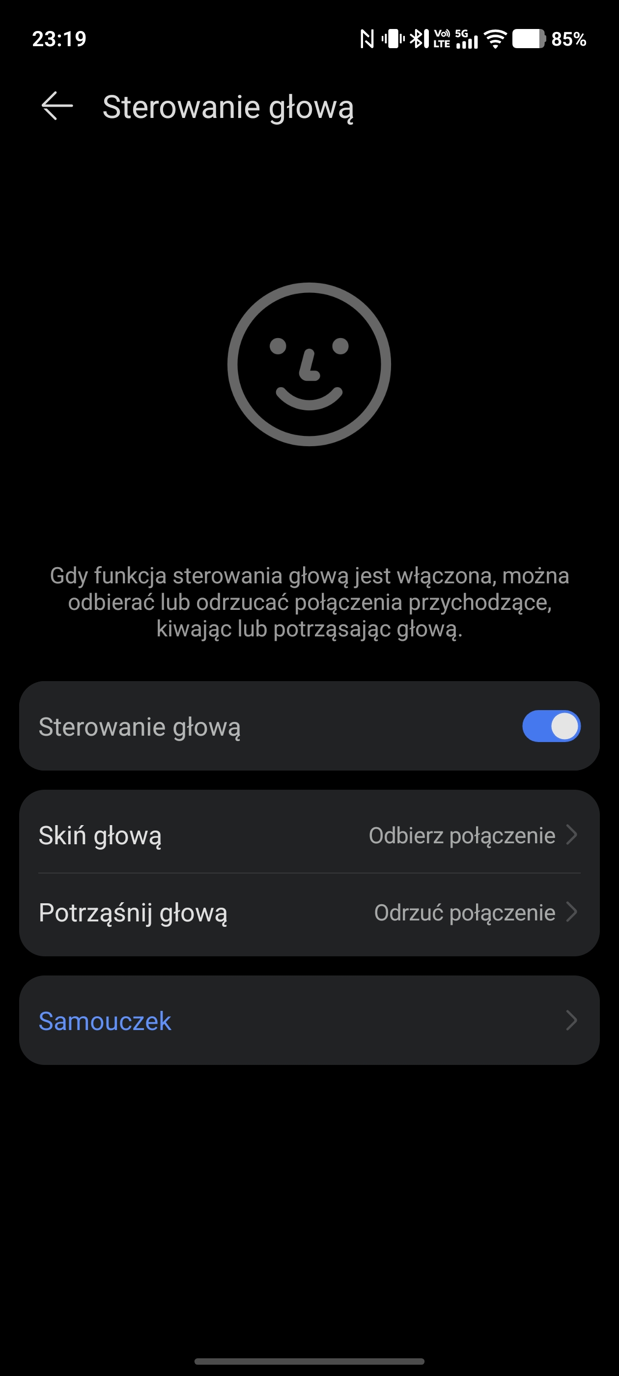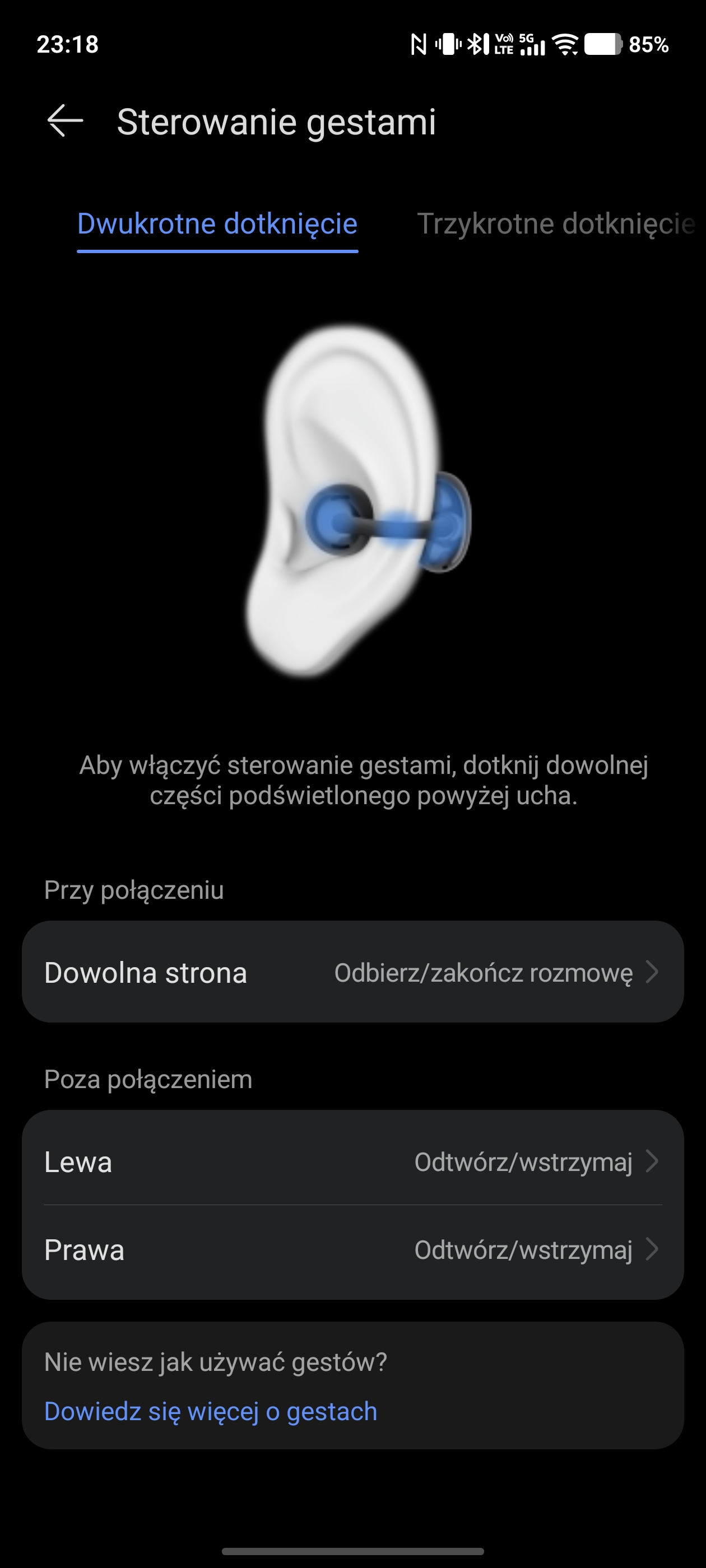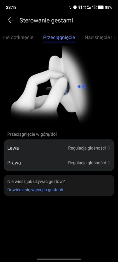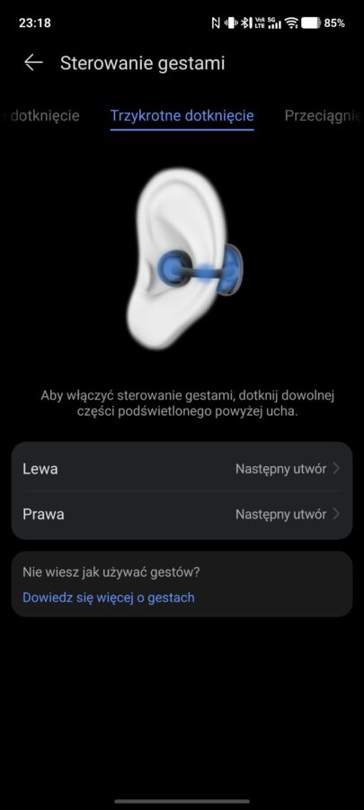 Sterowanie gestami z poziomu słuchawek