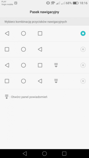 - pasek nawigacyjny może zawierać trzy lub cztery ikony (czwartą jest otwieranie paska powiadomień), dodatkowo możemy zamieniać miejscami wstecz i otwarte aplikacje według naszych preferencji,