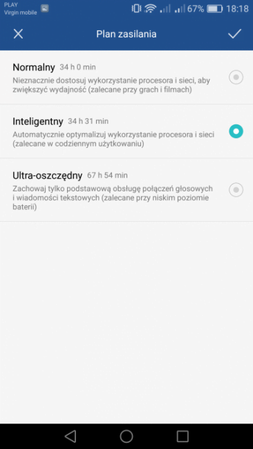 Funkcje dostępne w EMUI: