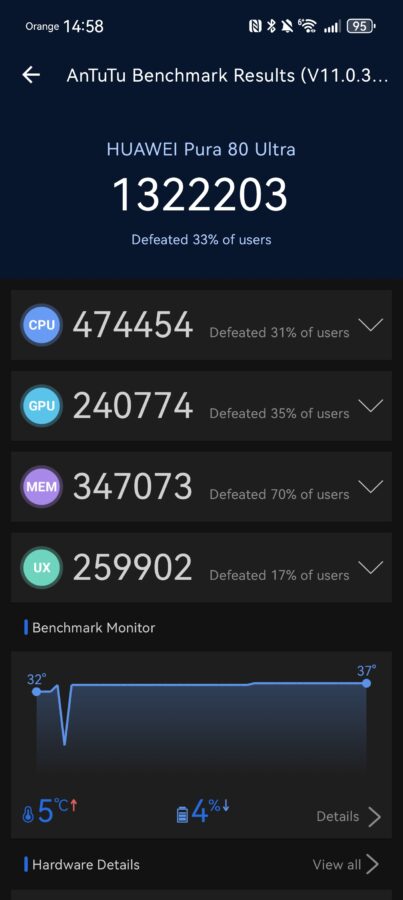 I, z jednej strony, patrząc stricte na cyferki w benchmarkach, widzimy, że nie jest to demon suchej wydajności, która to plasuje się na poziomie procesorów ze średniej półki, podczas gdy mówimy o smartfonie kosztującym naprawdę poważne pieniądze. Z drugiej jednak, wzrost mocy względem układu z Pura 70 Ultra jest widoczny (różnica w AnTuTu to 1,3 mln vs 897 tys. punktów), co pokazuje, że Huawei rzeczywiście stara się rozwijać swoje procesory.