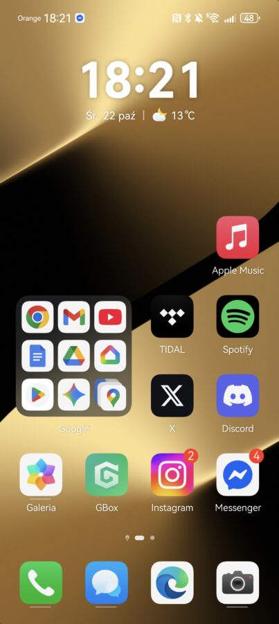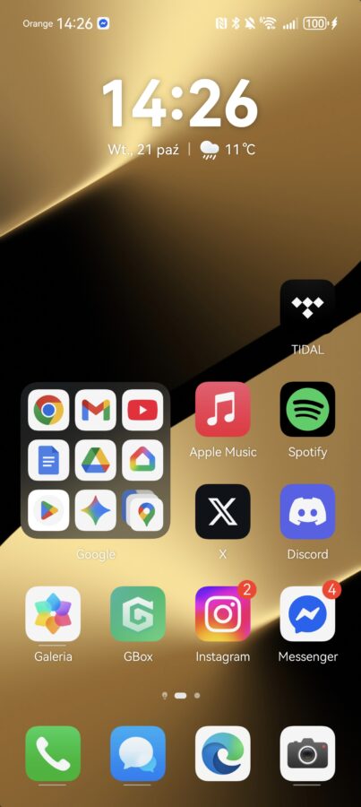 Jednocześnie, całość wygląda – jak u Huawei – bardzo krągło i kolorowo, ale przy tym schludnie, przez co – finalnie – naprawdę może się to podobać. Nie brak też fajnych rozwiązań, takich jak duże foldery z aplikacjami (bardzo lubię z tego korzystać) oraz szeregu funkcji ekosystemowych między urządzeniami marki. Np. możemy sklonować ekran naszego smartfona na laptop lub tablet Huawei, sterować nim z jego poziomu, a nawet kopiować w ten sposób zdjęcia z telefonu.