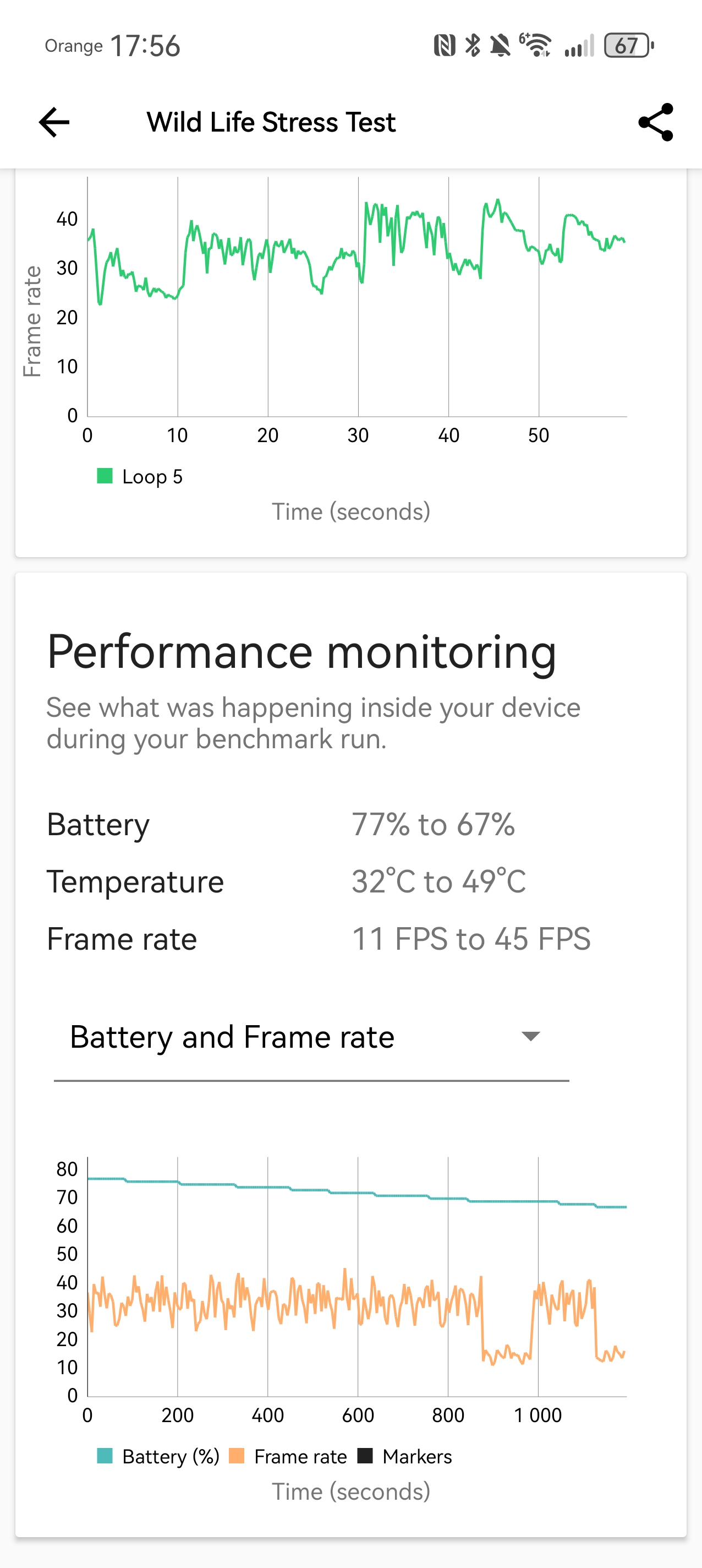 Przy prawie stuprocentowym wykorzystaniu transmisji danych po LTE, najniższe wyniki wyniosły niespełna 6 godzin włączonego ekranu, a najwyższe – w których najwięcej było użycia WiFi – przebijały barierę 8 godzin.