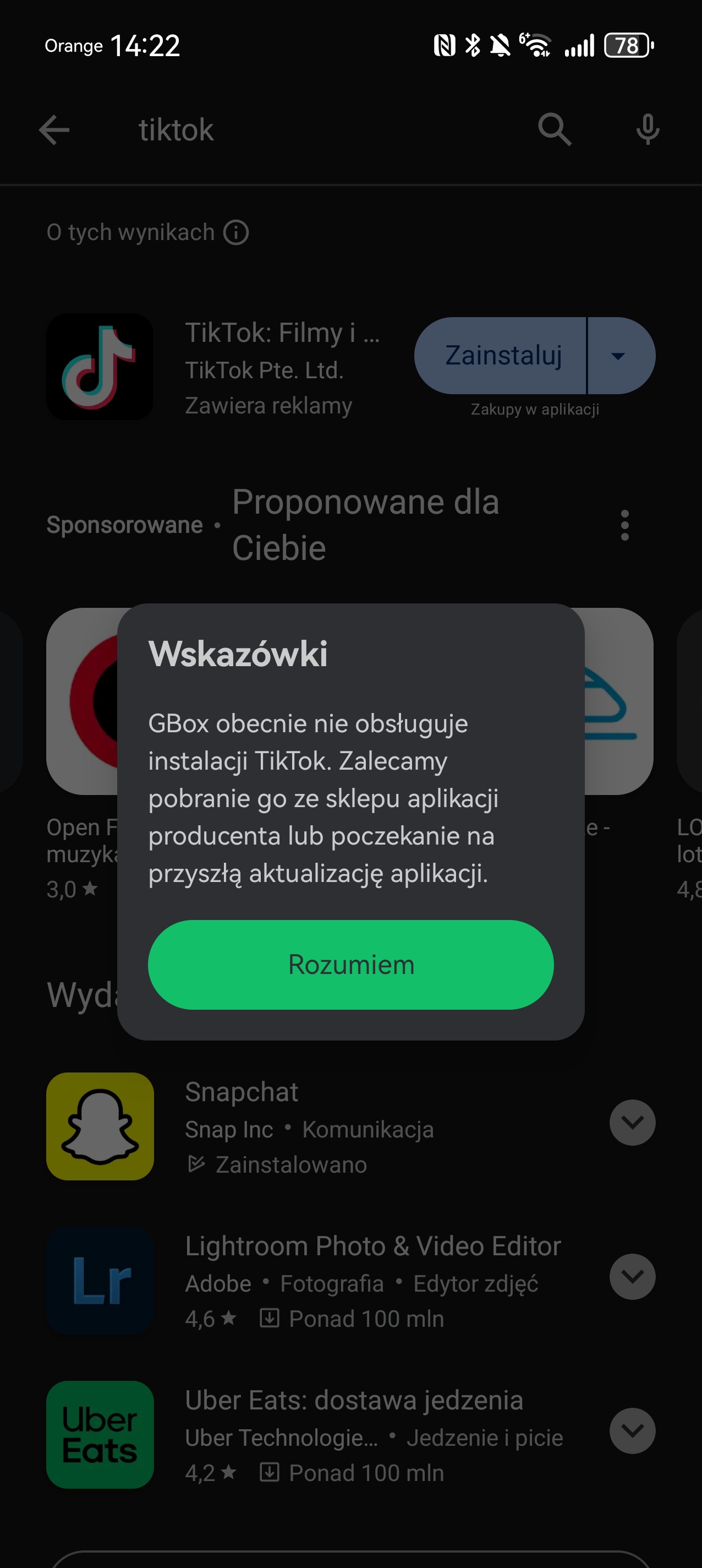 Następnie sięgnąłem do wspomnianej aplikacji GBox, która to wirtualizowała sklep Google Play na urządzeniu i pozwalała mi już na bezpośrednie, fizyczne pobieranie apek na telefon. Fizyczne bowiem nie meldują się one już w wirtualnej przestrzeni, jak miało to miejsce niegdyś w przypadku GBoxa, a normalnie pozostają zainstalowane na urządzeniu.