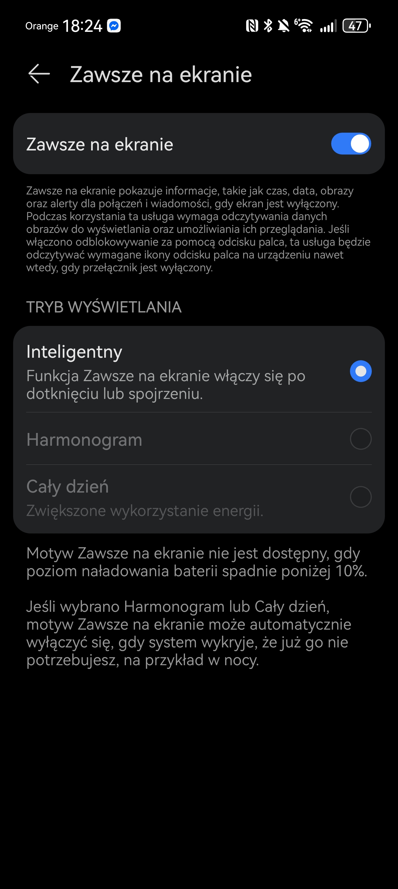 Całości dopełnia równiez obecność Always On Display, przy czym – podobnie, jak w poprzedniku – może się ono co prawda wyświetlać z przygaszoną tapetą, ale tylko w trybie inteligentnym. Oznacza to mniej więcej tyle, że ekran zapala się na chwilę, w momencie, gdy spojrzymy na telefon albo nim poruszymy.