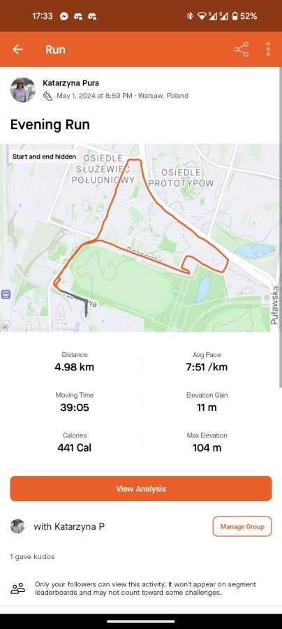 Łącznie Huawei Watch Fit 3 oferuje ponad 100 trybów treningowych (na czele z bieganiem, kolarstwem i pływaniem), ale w większości z nich zbierane są tylko podstawowe informacje, takie jak czas poświęcony na ćwiczenia, tętno czy liczba spalonych kalorii. W tych kluczowych możemy dodatkowo liczyć na pomiar kadencji, długość kroku czy też trasę (i muszę przyznać, że GPS radzi sobie świetnie).