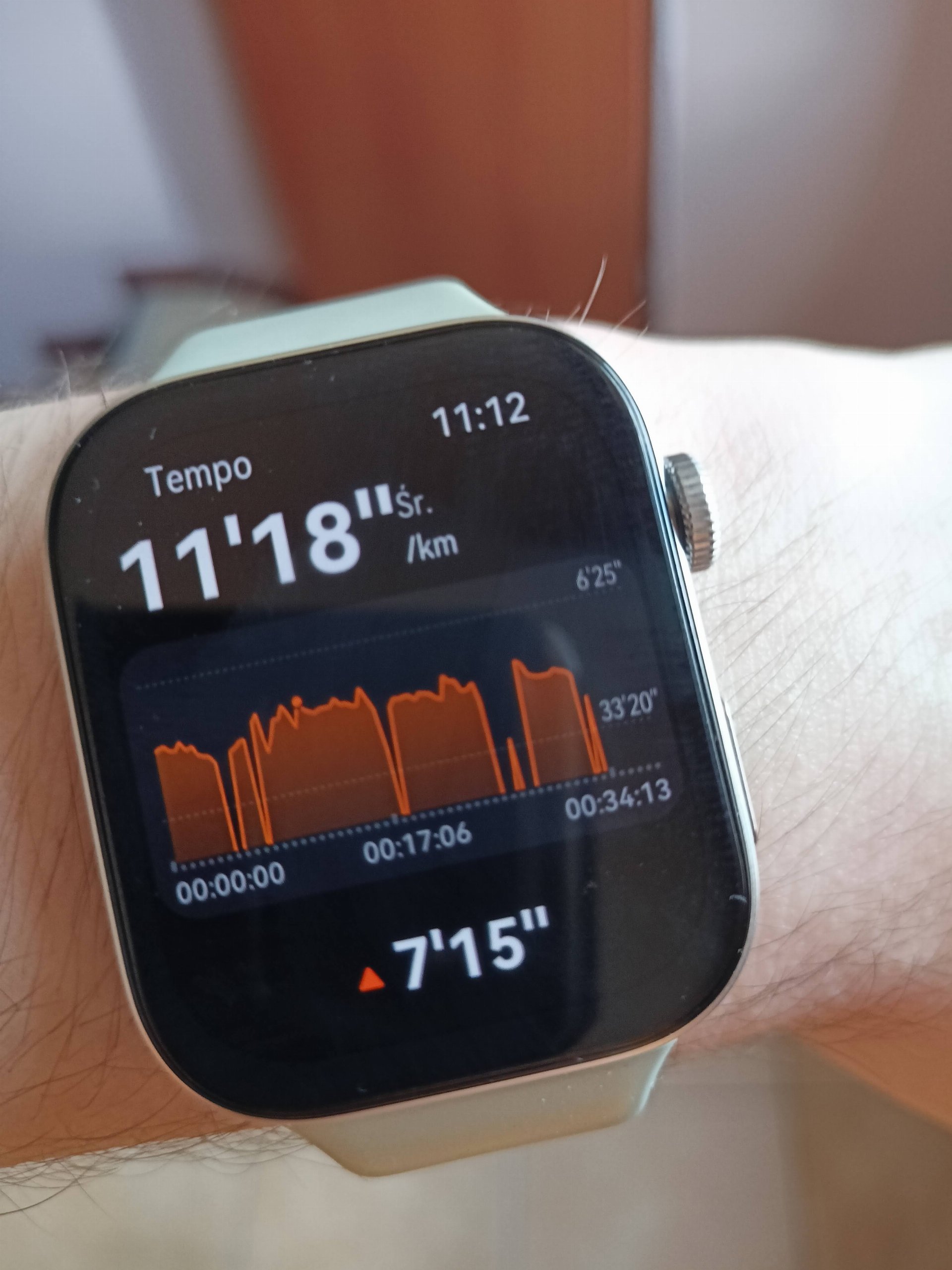 Poniżej możecie zobaczyć dwa treningi – z Watch Fit 3 vs Strava odpalona na Samsungu Galaxy A35 5G.