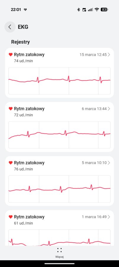 Wciąż nie wiem, jak podejść do oceny treningu siłowego. Huawei Watch GT Runner 2 tylko mierzy puls i czas trwania całej aktywności oraz szacuje liczbę spalonych kalorii. Nie zlicza powtórzeń, tak jak robią to zegarki Garmin czy Amazfit. Z drugiej strony, jak pokazują testy z pasami napiersiowymi, smartwatche Huawei w takich treningach mogą precyzyjniej mierzyć puls niż typowo sportowe urządzenia innych producentów – nie w sposób idealny, ale zazwyczaj są lepsze.