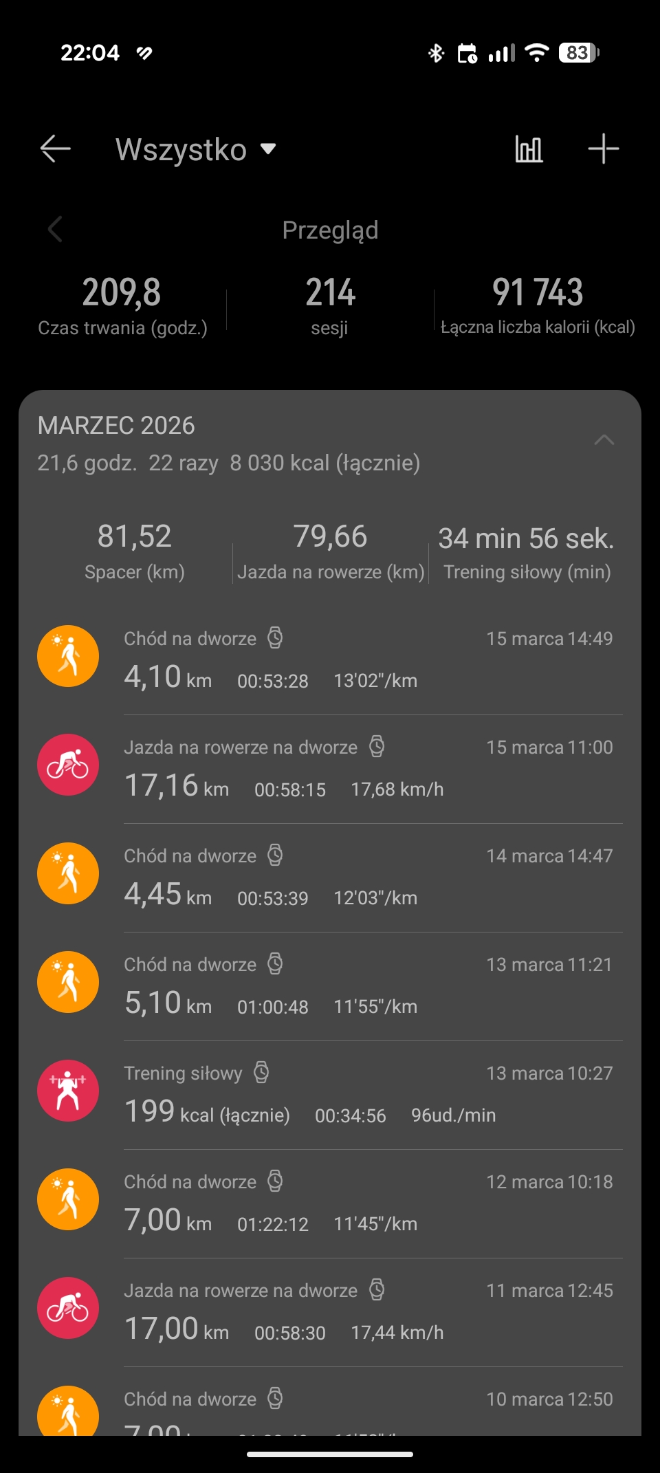 Postanowiłem podejść do testów w odmienny sposób i sprawdzić, jak bohater tego tekstu wypada w innych, raczej tych mniej intensywnych aktywnościach. W końcu nie każdy jest miłośnikiem biegania, a omawiane urządzenie wyposażone jest w długą listę funkcji sportowych i nic nie stoi na przeszkodzie, aby kupić go do spacerów, jazdy na rowerze, treningów siłowych czy nawet tylko do liczenia kroków w ciągu dnia.