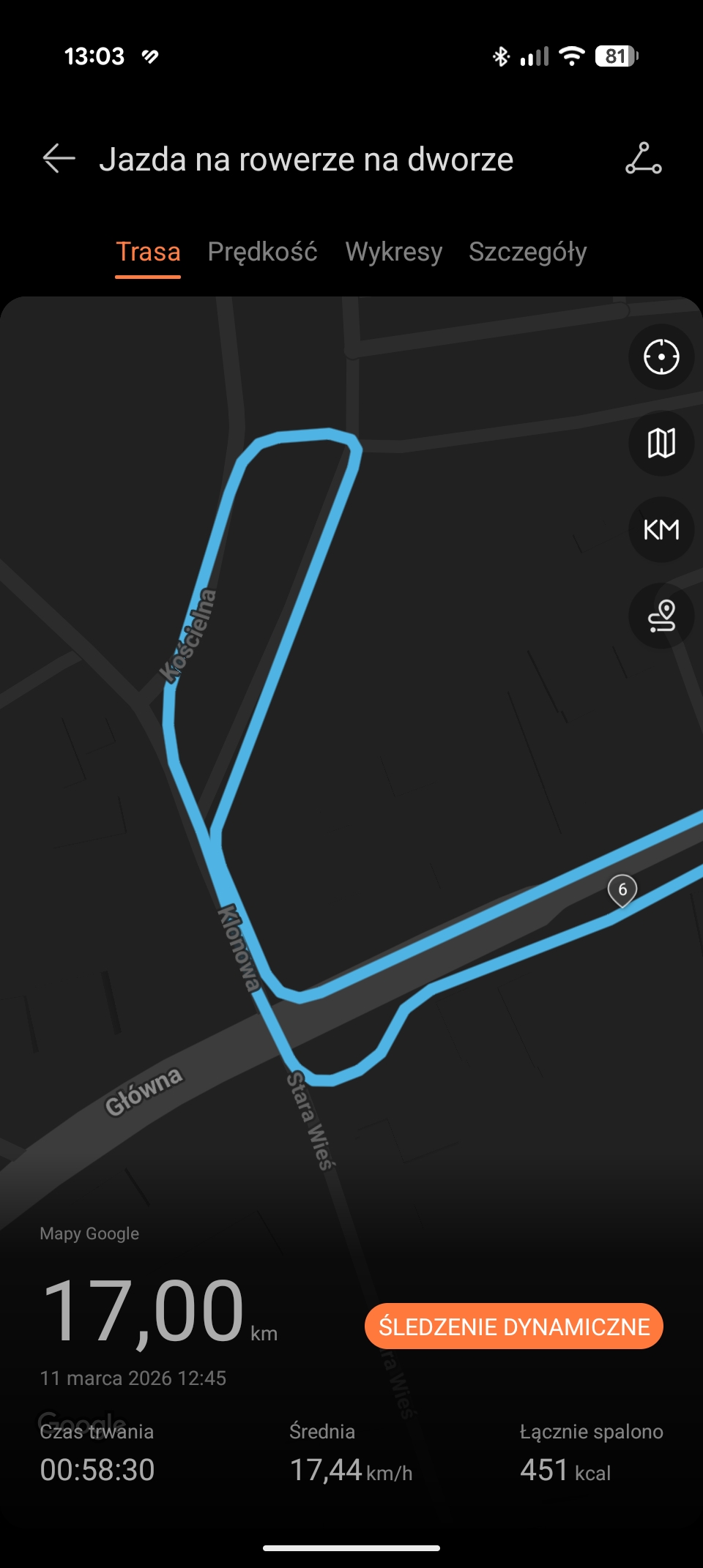 Podczas jazdy rowerem świetnie sprawdza się funkcja automatycznego zatrzymywania/wznawiania treningu. Nie było sytuacji, w której musiałbym zatrzymywać lub wznawiać trening ręcznie. Nie wiem, czy jest równie skuteczne w treningach biegowych – nie mogłem tego jeszcze sprawdzić. Szkoda, że funkcja nie jest dostępna dla spacerów, bowiem mogłaby być przydatna w trakcie moich wspólnych marszów z pieskiem.