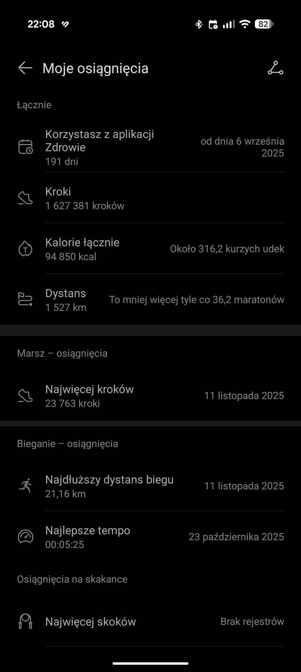 Co ciekawe, oprócz tych podstawowych celów, dostępne są też koniczynki zdrowia, które skupiają się na jakości snu, krokach, stresie i mogą uwzględniać dodatkowe zadania jak pomiary ciśnienia. Oczywiście Huawei Watch GT Runner 2 nie udaje, że potrafi mierzyć ciśnienie – musimy wprowadzić dane z zewnętrznego ciśnieniomierza. Koniczynki można zaliczać w ciągu dnia, chociażby starając się chodzić spać o regularnych godzinach i dbając o odpowiednią długość snu.