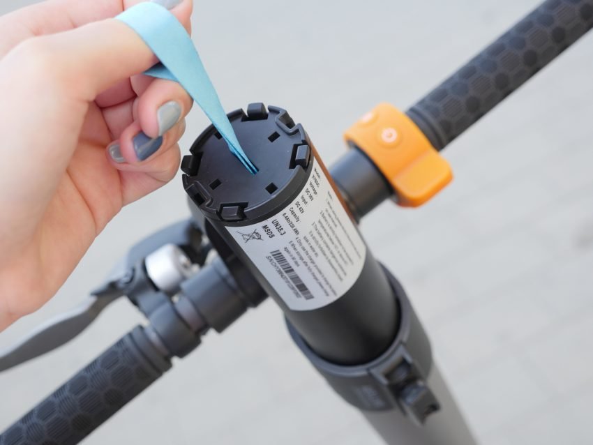 A skoro już o ruchomych częściach hulajnogi mowa, warto zwrócić uwagę na to, w jaki sposób można przenosić czy też przewozić hulajnogę. Podstawową rzeczą jest to, że kierownicę można złożyć tak, by leżała na podeście, a więc na płasko. Dodatkowo można odkręcić obie rączki i hamulec, by całość zajmowała nieco mniej miejsca na szerokość, co przy przewożeniu jej może mieć znaczenie. A propos przenoszenia jedna uwaga – EX4 e-orange waży 13 kg, a więc nie jakoś przesadnie dużo.