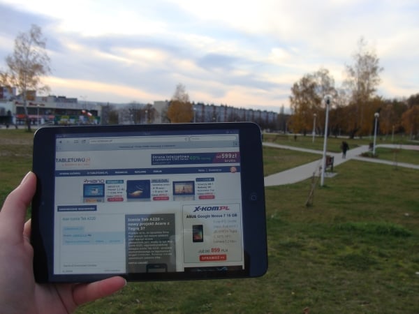 Jednym z najczęściej zadawanych przez Was pytań było: „czy rozdzielczość 1024 x 768 pikseli na ekranie o przekątnej 7,9” jest wystarczająca (mając w zamyśle 1280 x 800 na 7” w Nexus 7)?”. Jak mogliście usłyszeć i zobaczyć w wideo z początku wpisu, trzymając tablet w pozycji horyzontalnej, przeglądanie stron internetowych bez powiększania treści – moim zdaniem – nie jest komfortowe (tu w grę wchodzi przede wszystkim kilkumiesięczne przyzwyczajenie do Retiny – ostrej jak brzytwa). Czcionki nie są do końca ostre i wygładzone, przez co brakuje im trochę do idealnej czytelności. Sytuacja zmienia się w chwili, w której tablet weźmiemy do rąk w pozycji poziomej – wtedy bez problemu możemy przeczytać to, co znajduje się na ekranie.