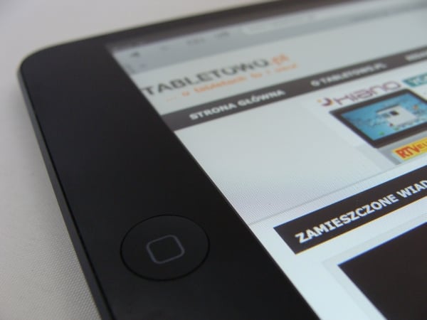 W moje ręce trafiła czarna wersja kolorystyczna iPad mini (z recenzji nowego iPada – w sensie trzeciej generacji – możecie się dowiedzieć, że tamten model jest biały). Jego eleganckie wzornictwo i wzorowe materiały, z których został wykonany (swoją drogą: świetnie spasowane), sprawia, że trudno oderwać od niego wzrok. Pierwsze, co rzuca się w oczy, to bardzo cienka ramka przy bocznych krawędziach produktu (trzymając go w pozycji pionowej), a grubsza przy górnej i dolnej krawędzi (u góry miejsce na kamerkę, na dole – jedyny przycisk: home). W iPadzie trzeciej generacji wyczuwalna jest różnica poziomów między wyświetlaczem a resztą obudowy (ekran jest nieco wyżej, wystaje z ramki, co powoduje zbieranie brudu w szczelinie) – w iPadzie mini różnica ta została zniwelowana, wyświetlacz jest na równi z obudową. Wciąż jednak mamy do czynienia ze szczelinką, w której może się składować kurz.