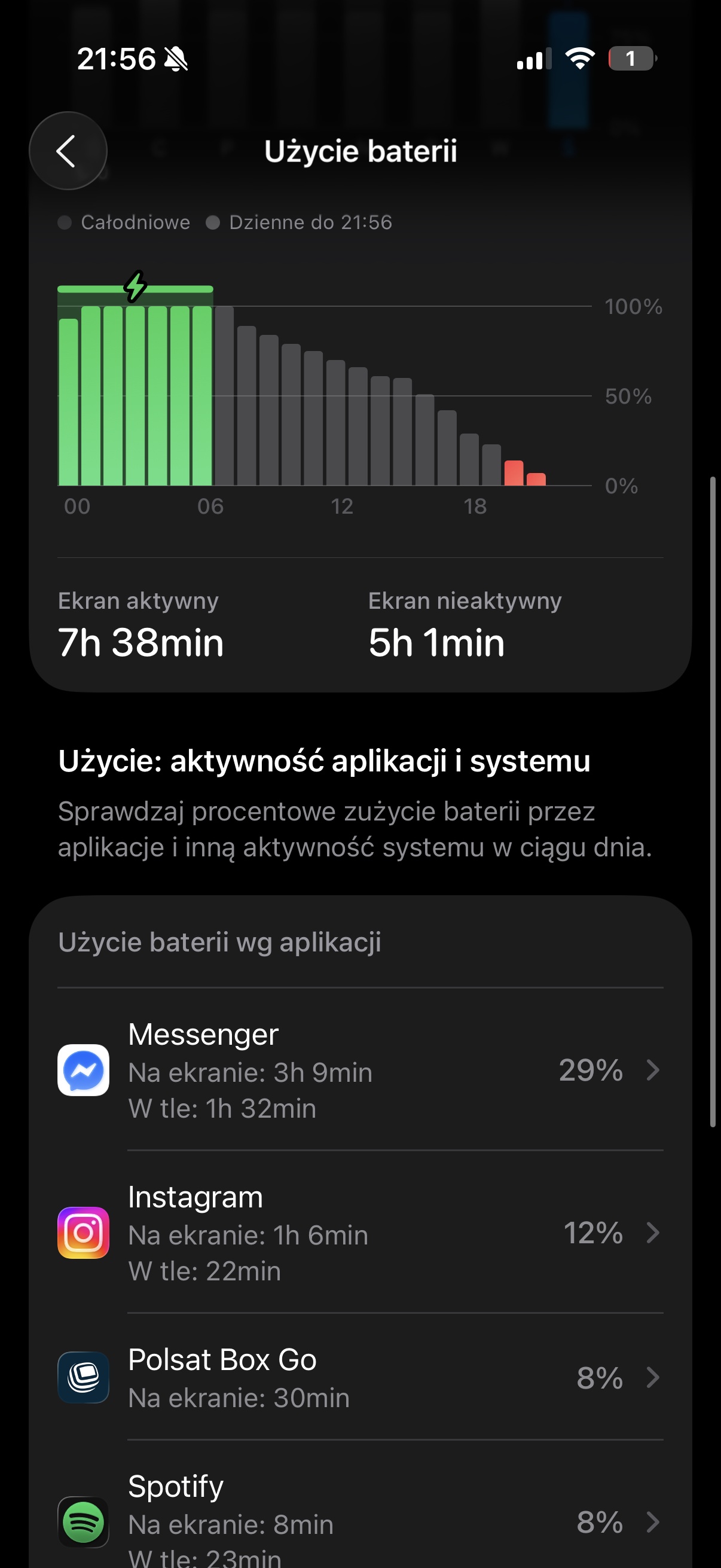 Z reguły, telefon odłączony rano o godzinie 8:00, był w stanie wytrzymać co najmniej do 20:00 przy intensywniejszym użytkowaniu lub dużej ilości 5G. Z kolei, gdy więcej korzystałem z niego na WiFi, był w stanie pociągnąć do 22:00-23:00, ale wówczas i tak kończył dzień najwyżej z 10% zapasu baterii.