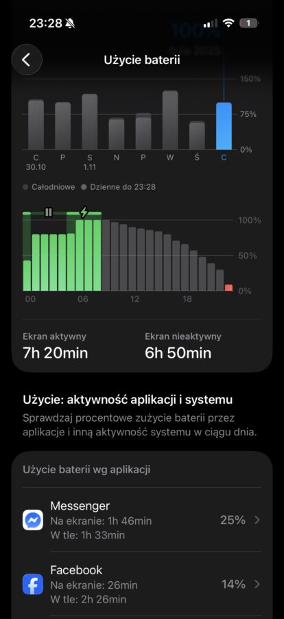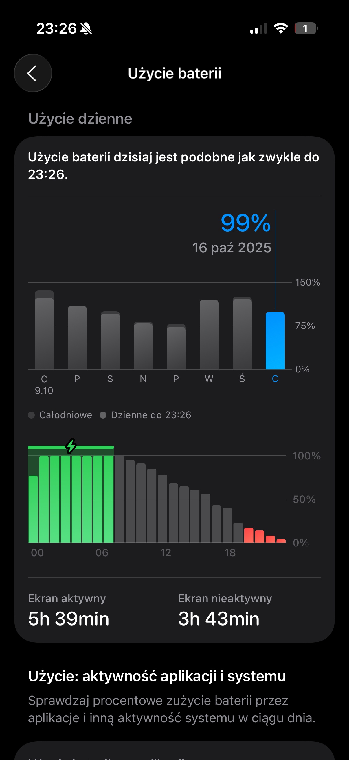 Absolutnie nie mogę powiedzieć, by były to złe wyniki, bo są one zupełnie dobre, ale jeśli nastawiamy się, że iPhone 17 Pro wytrzyma nam dłużej niż jeden dzień, możemy się rozczarować.