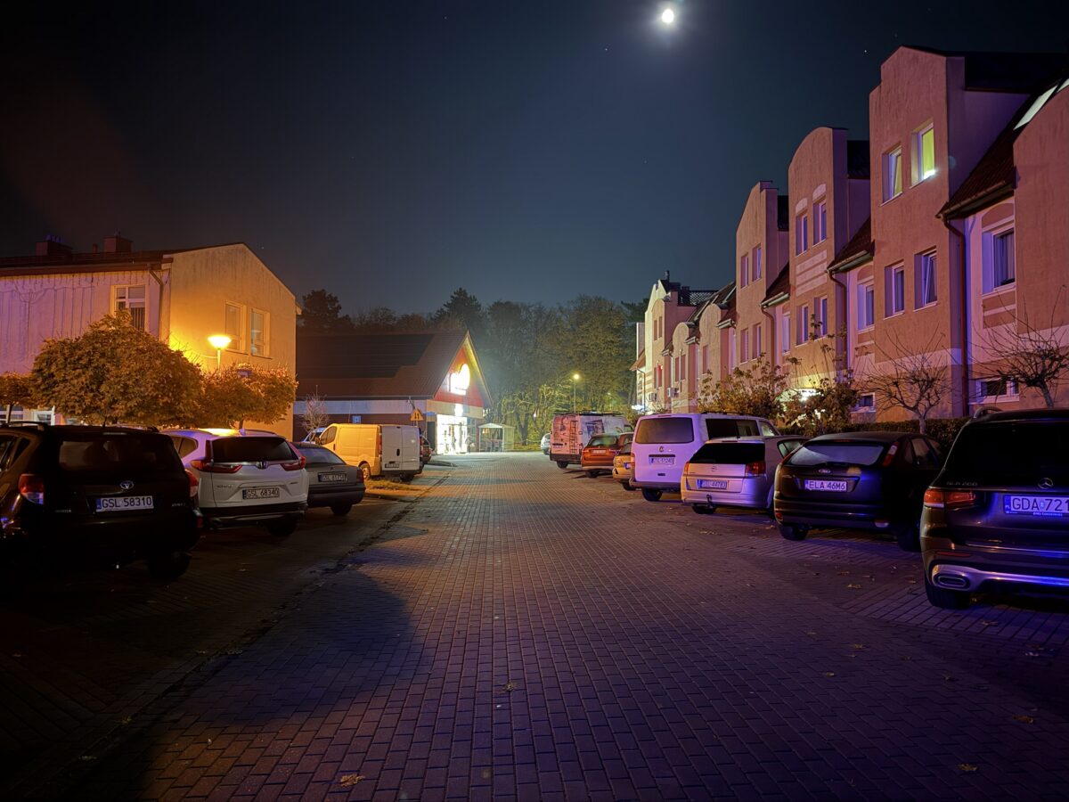 No i zdjęcia nocne. Tu do dyspozycji mamy oczywiście dedykowany tryb, którego aktywacja następuje z automatu w chwili, gdy oprogramowanie uzna to za konieczne. Jeśli chcemy, możemy go wyłączyć, klikając ikonę księżyca w górnej części interfejsu. Poprzez ponowne tapnięcie tej samej ikonki można też ręcznie wymusić tryb nocny, z dodatkowo wydłużonym naświetlaniem.
