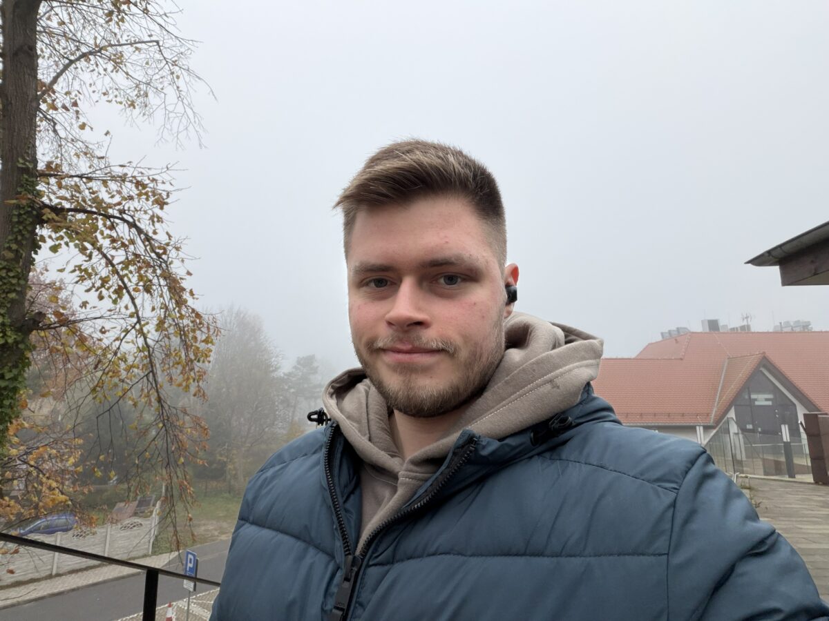 I, generalnie, selfie z iPhone’a 17 Pro wyglądają po prostu bardzo dobrze. Barwa skóry pozostaje zbliżona do naturalnej, podobnie jak kolorystyka reszty scenerii, jasne punkty nie są przepalone, a twarz jest w punkt wyostrzona.