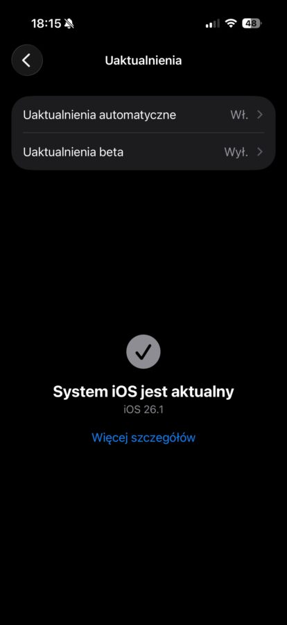 Od wyjęcia z pudełka, iPhone 17 Pro jest sprzedawany z preinstalowanym systemem iOS 26, przy czym najświeższa obecnie wersja po ostatnich aktualizacjach to 26.1. Przy tym, możemy spodziewać się długiego, około 7-letniego wsparcia aktualizacyjnego.