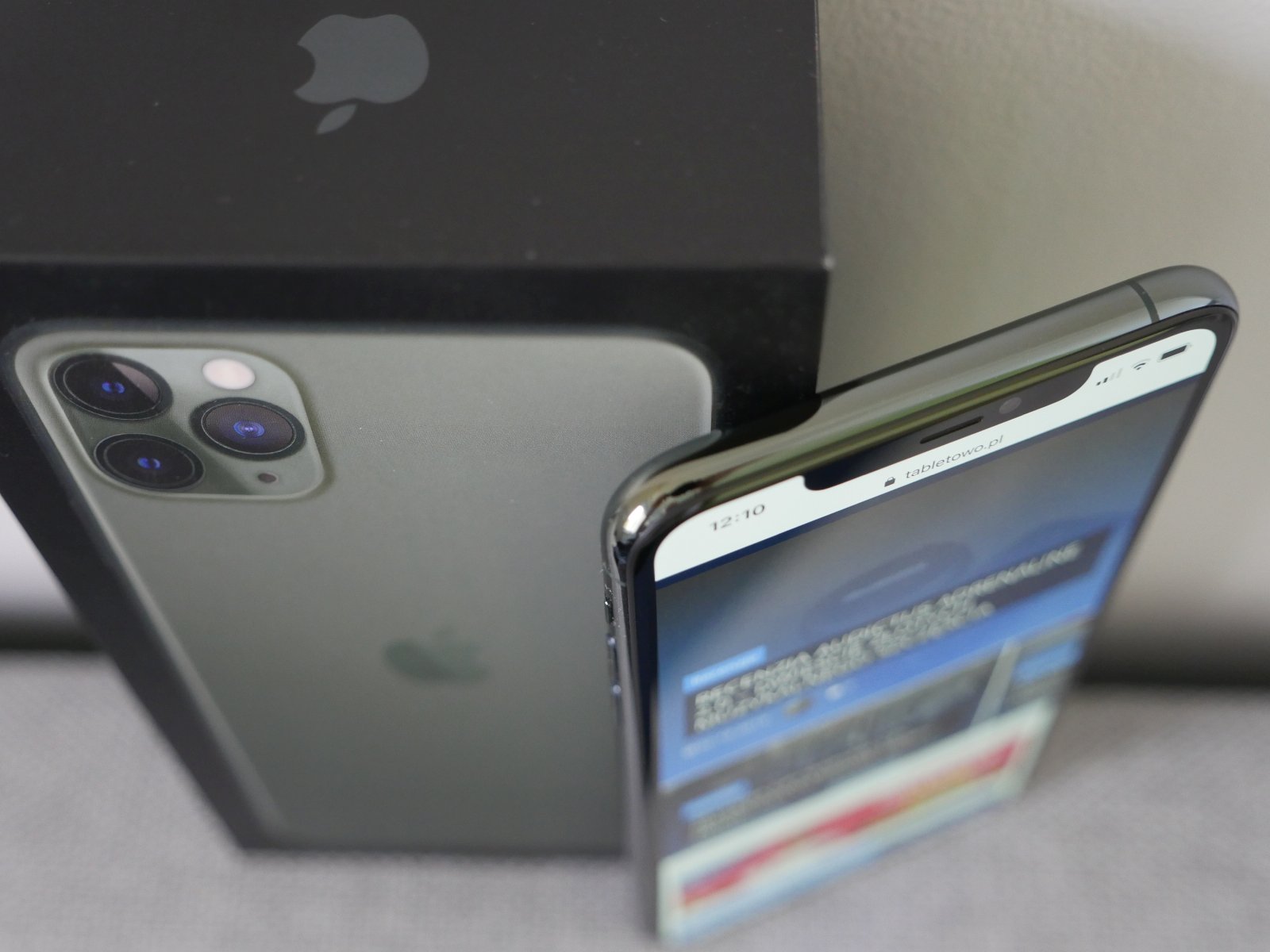 iPhone 11 Pro Max wykonany jest ze szkła (z przodu i z tyłu – tu ze zmatowionego i błyszczących krawędzi). I szkoda, że są one błyszczące, bo fakt ten sprawia, że niestety szybko zbierają odciski palców. Mam tylko nadzieję, że w iPhonie 12 jedyną zmianą wizualną nie będzie to, że te ramki będą tak samo matowe, jak obudowa, tylko że w ciemniejszym odcieniu… ;)