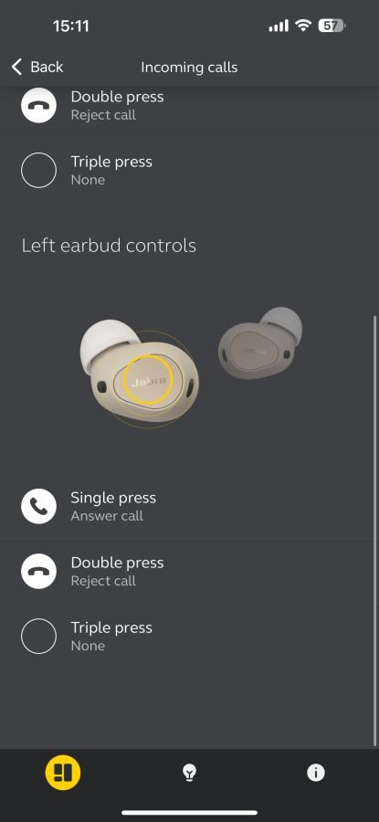 Dzięki temu rozwiązaniu zdecydowanie trudniej o omyłkowe dotknięcia, np. przy poprawianiu ułożenia słuchawek w uchu, jak też po prostu łatwiej wyczuć ile razy faktycznie kliknęliśmy. Przyciski w Jabra Elite 10 działają bez zarzutu, z wyczuwalnym kliknięciem, przy czym też nie powodujemy ich używaniem nieprzyjemnego wciskania w małżowinę.
