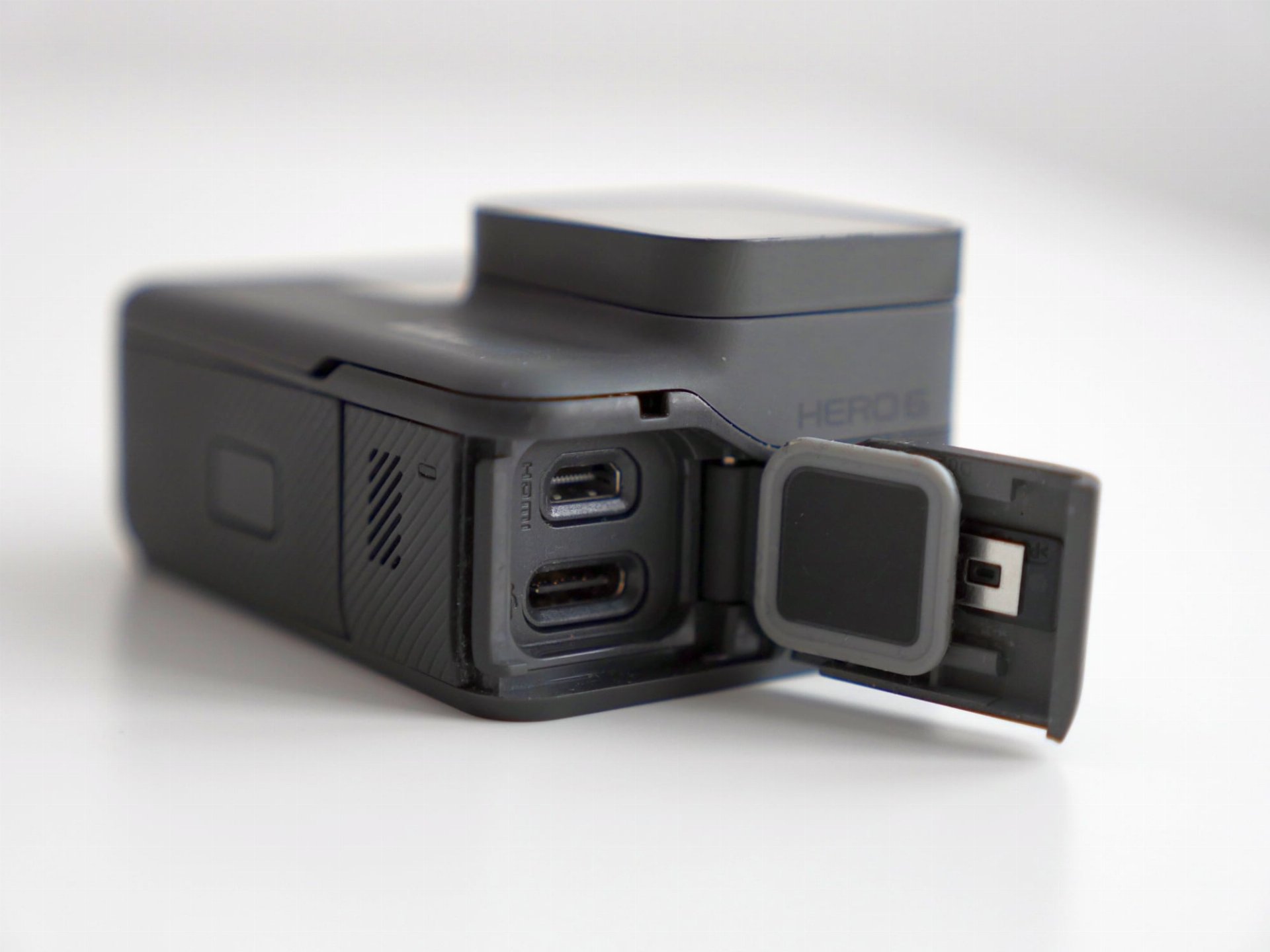 Drugą zaletą GoPro Hero 6 jest fakt, że jest wyposażona w USB typu C (podobnie zresztą, jak poprzednia generacja urządzenia) – dla mnie to plus, bo aktualnie w większości korzystam ze smartfonów z ładowarkami wykorzystującymi ten sam standard, przez co z kolei nie muszę nosić ze sobą większej liczby kabli. Tuż obok portu ładowania jest też HDMI w wersji micro, za pomocą którego możemy udostępnić nagrane multimedia bezpośrednio na duży ekran.