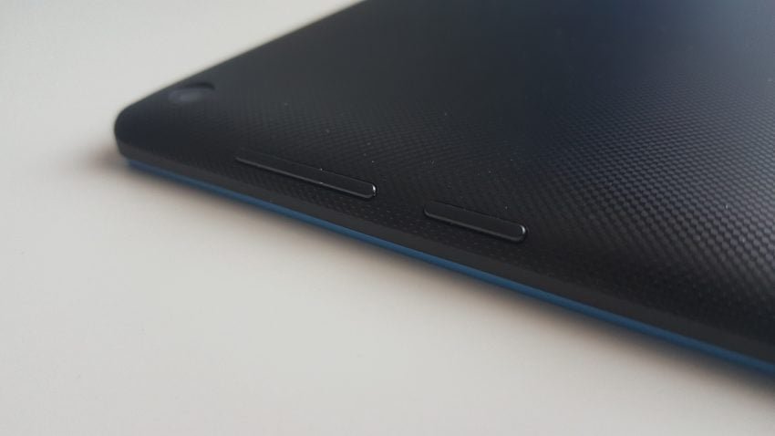 Jakość wykonania również wypada pozytywnie. Spodziewałem się, że w tej cenie nie otrzymamy zbyt porządnie spasowanego urządzenia, a tymczasem recenzowane Lenovo zaskoczyło, choć sztywność konstrukcji nie zasługuje na szczególne słowa pochwały. Na plus także skok przycisków. Jedynie fakt, że są one umieszczone delikatnie pod kątem, wymaga chwili przyzwyczajenia. Sprzęt wygodnie leży w dłoni. Plecki są zaokrąglone i charakteryzują się chropowatą fakturą, dzięki której tablet nie ślizga się.