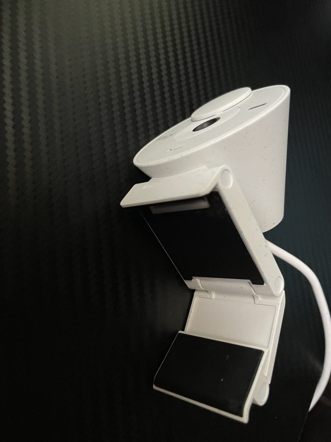 Logitech Brio 300 charakteryzuje się konstrukcją wykonaną z tworzywa sztucznego. Nie jest to na szczęście tandetny plastik i powierzchnia jest przyjemna w dotyku, a w dodatku całość nie wygląda na „taniego chińczyka”.