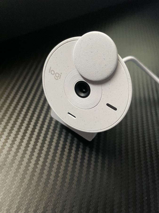 Po odpakowaniu prostego pudełka (mały karton, niczym się niewyróżniający), w którym nie ma zbyt wielu elementów (a w zasadzie to tylko kamerka + mała instrukcja), moim oczom ukazał się Logitech Brio 300 i od razu pod kątem wizualnym to cacko skradło moje serce. Jest to dość unikatowa bryła w owalnym kształcie. Powierzchnię pokrywa nie tylko biała farba, ale także szereg małych kropeczek, które nadają charakteru.