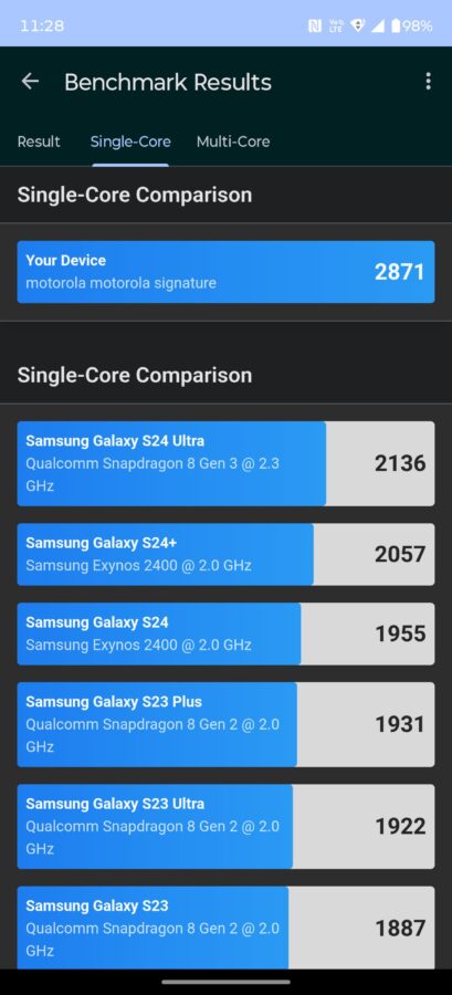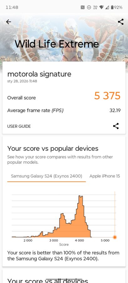 I, jasne, można by czepiać się, że skoro to ma być flagowiec, to powinien być tutaj obecny wspomniany Snapdragon 8 Elite Gen 5. Tyle że w codziennym użytkowaniu Motorola Signature i tak nie pozwala narzekać, bo jej wydajność stoi na wprost rewelacyjnym poziomie.