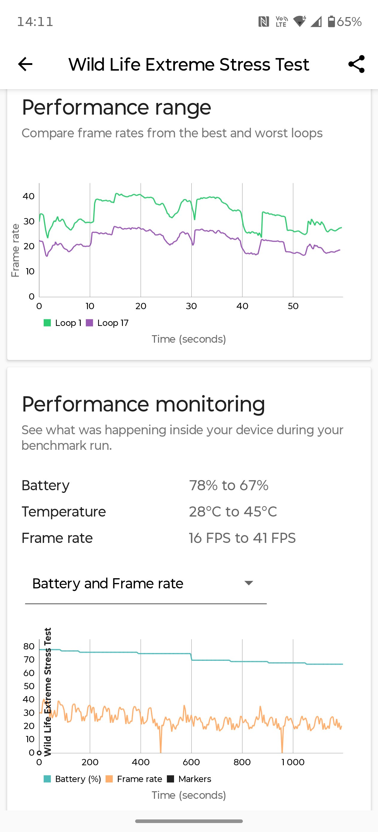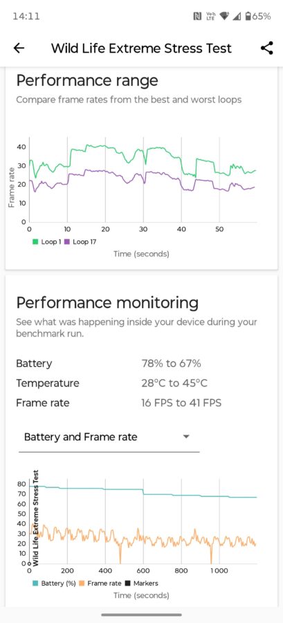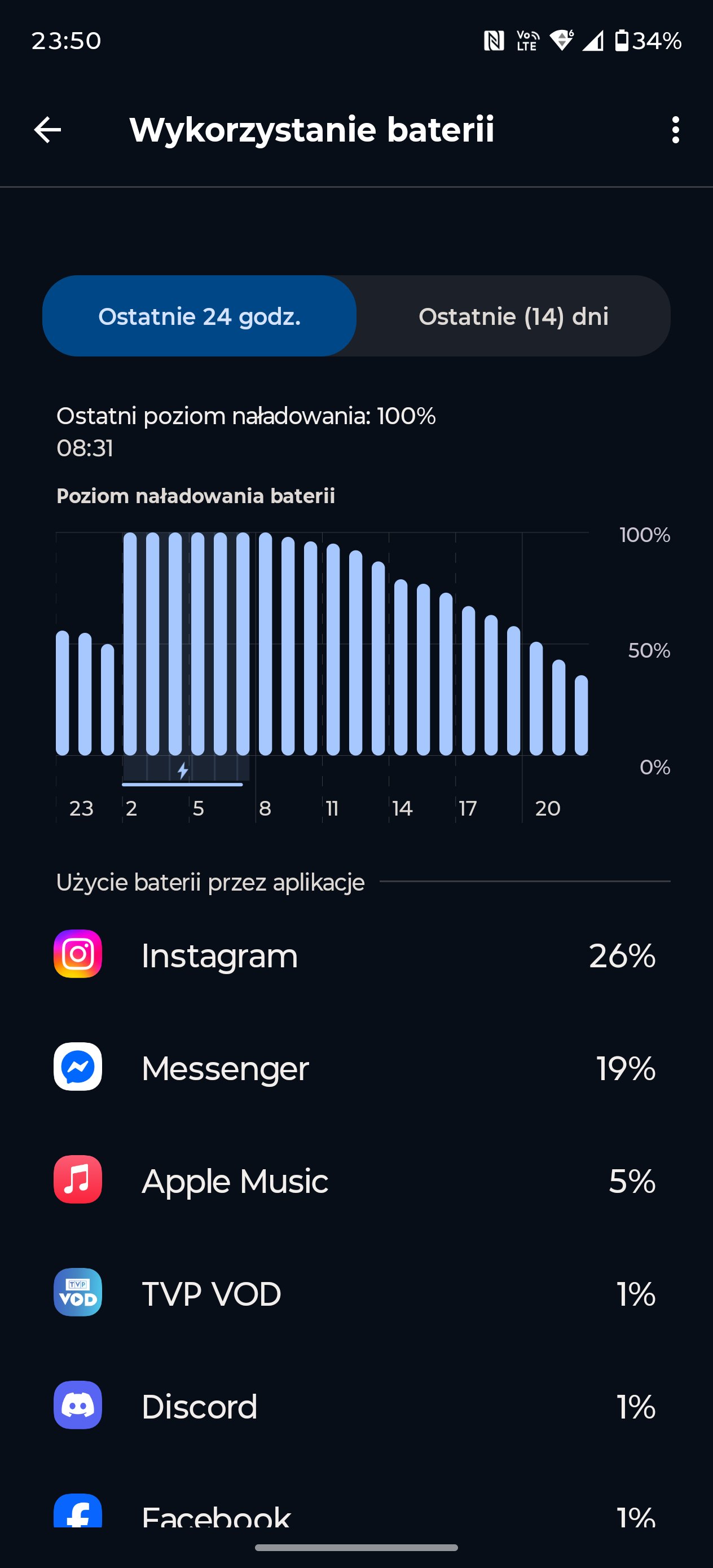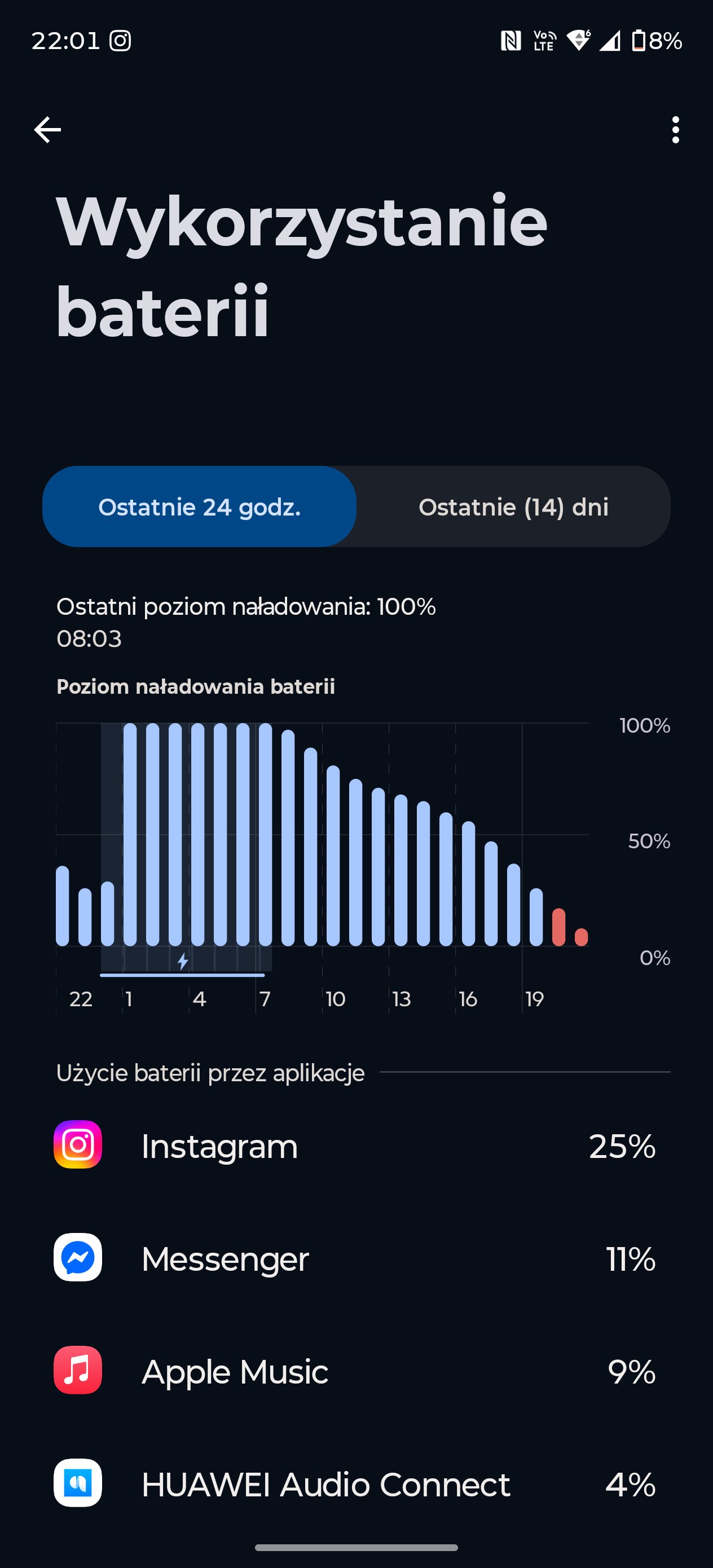 Gdy użytkowanie było nieco mniej intensywne i przeważało wykorzystanie WiFi, telefon odłączony rano, przed północą potrafił kończyć dzień mając jeszcze około 30-35% baterii. Nie był to jednak wówczas zapas pozwalający na używanie telefonu kolejnego dnia, bo rozładowywał się wtedy już o 15:00.