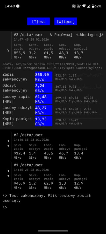 Praktycznie cały interfejs systemu pozostaje stuprocentowo responsywny, każda animacja jest płynna, a aplikacje uruchamiają się w ułamku sekundy, bez choćby cienia zwłoki. Smartfon nie łapie zadyszki ani podczas typowego użytkowania, ani przy szybkim żonglowaniu apkami jedna za drugą.