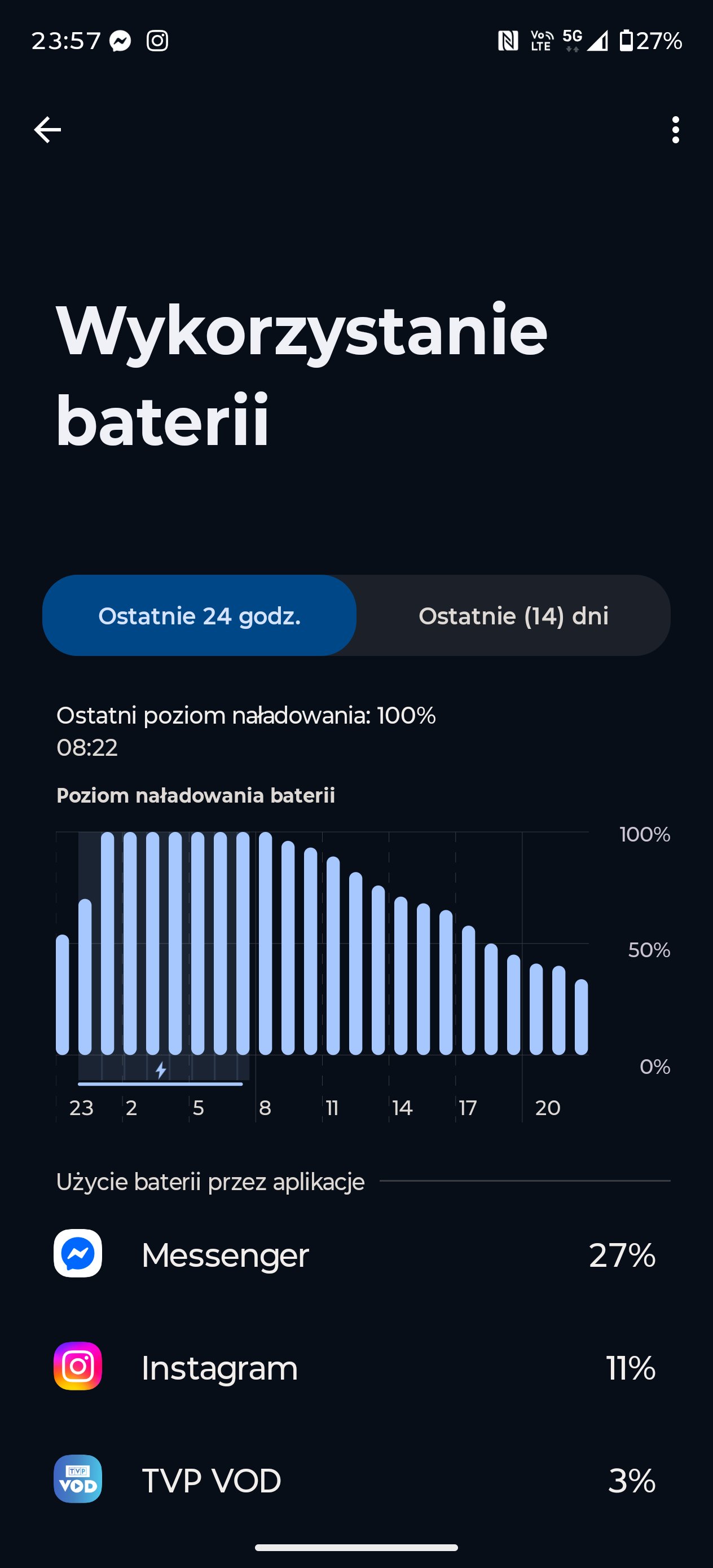 Mimo tej – co już ustaliliśmy – relatywnie małej baterii, smartfon obsługuje szybkie ładowanie o mocy 90 W. Co więcej, wcale nie musimy mieć oryginalnej ładowarki Motoroli, by tą pełną moc osiągnąć, bowiem aktywuje się ona także na dowolnym adapterze USB-C Power Delivery (w moim przypadku była to kostka 140 W Ankera).