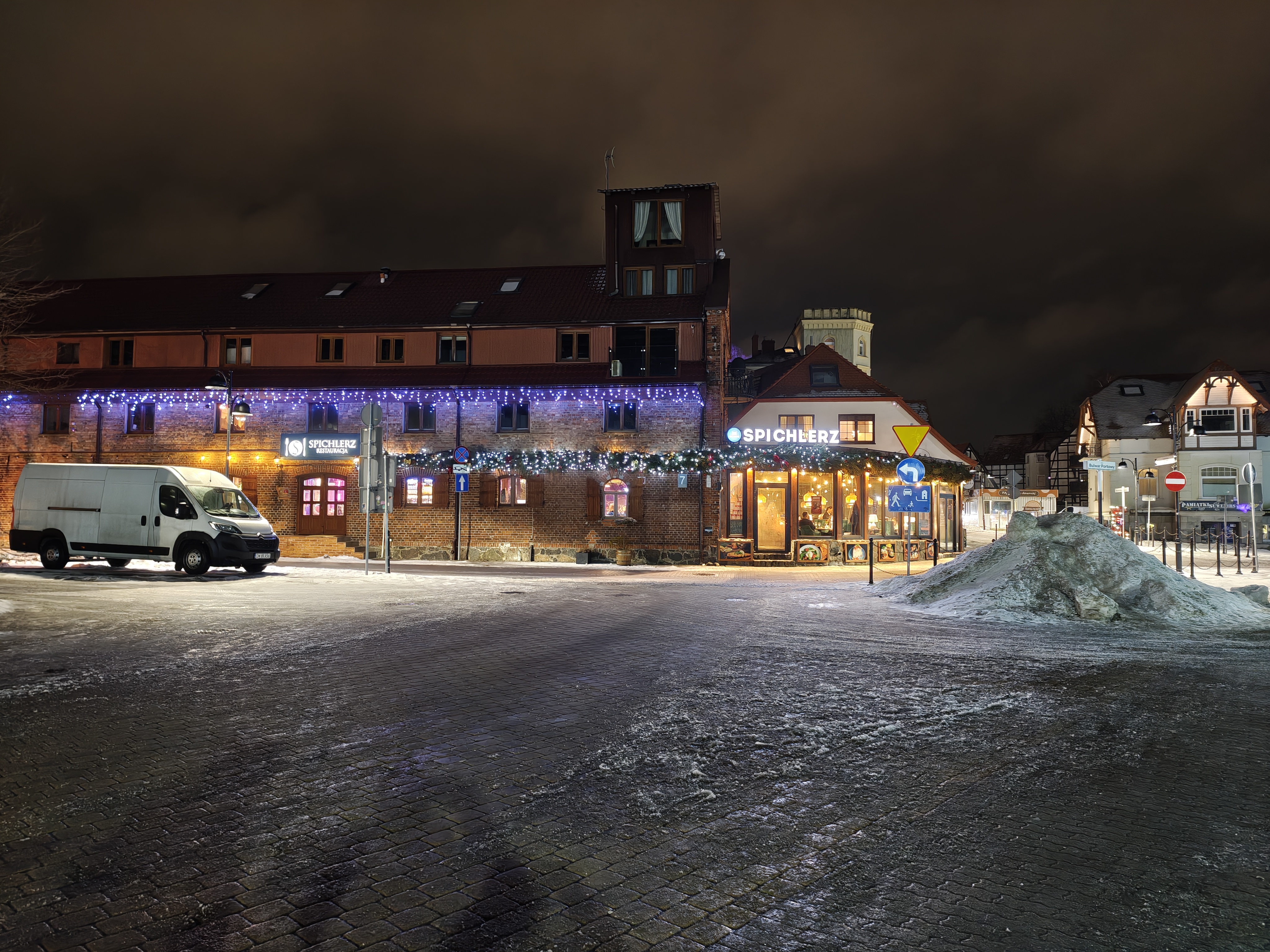 I, generalnie, zdjęcia nocne z Motoroli Signature wyglądają całkiem dobrze, ale – w moim odczuciu – często bliżej im raczej do poziomu średniaka, aniżeli flagowca. Głównym problemem jest tendencja do częstego przepalania źródeł światła oraz wszelakich szyldów i neonów, zamiast delikatnego przygaszenia ich (zwróćcie uwagę np. na zdjęcia szyldu lodziarni). Niekiedy potrafią być też widoczne szumy w ciemnych punktach czy też właśnie wokół źródeł światła, ale to akurat nie jest już tak bardzo nagminne.