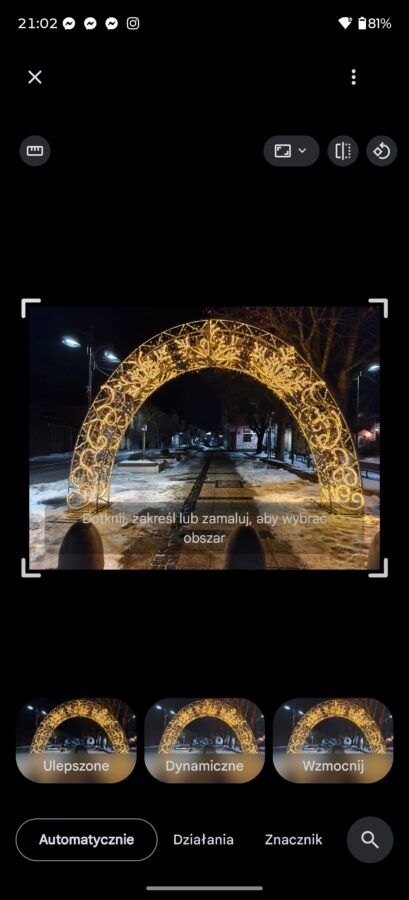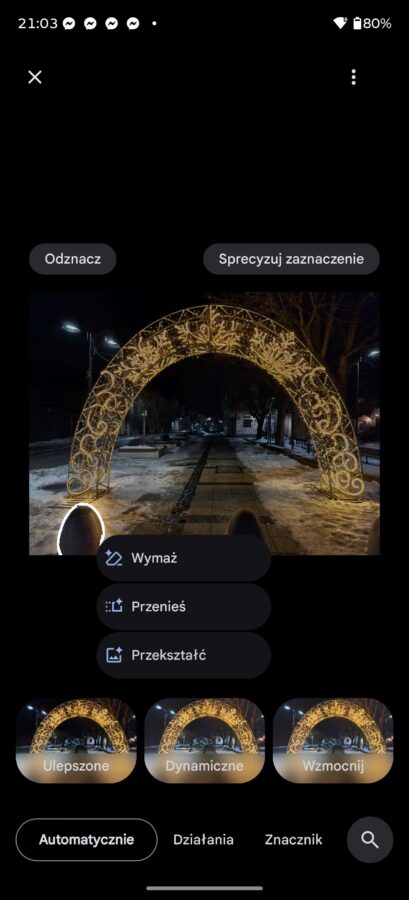 Śmiem twierdzić, że najsłabszy punkt aparatu Motoroli Signature stanowią zdjęcia po zmroku. Do ich robienia oddelegowano tryb nocny, który został nieco schowany, bo znajdziemy go dopiero w sekcji ze wszystkimi trybami foto. Nie ma jednak potrzeby włączania go, bo aparat robi to automatycznie, w zasadzie niezauważenie dla nas. W efekcie, zdjęcia z trybu auto i nocnego za każdym razem wyglądają identycznie.