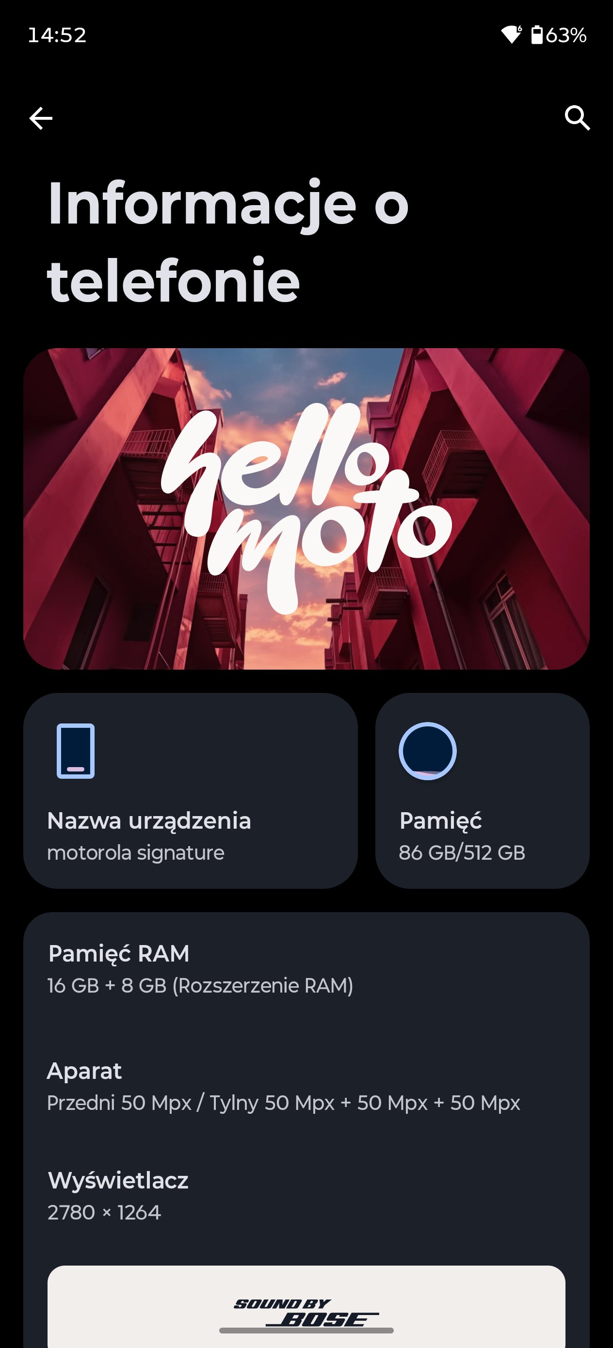 Od wyjęcia z pudełka, Motorola Signature działa na systemie Android 16 z interfejsem Motoroli. Podobnie jak w poprzednich wersjach, nakładka ta jest bardzo lekka i w wielu miejscach wizualnie przypomina niemal czystego Androida. Jednocześnie, nie brakuje tu opcji personalizacji i funkcji dodatkowych, z których spora część jest naprawdę przydatna.