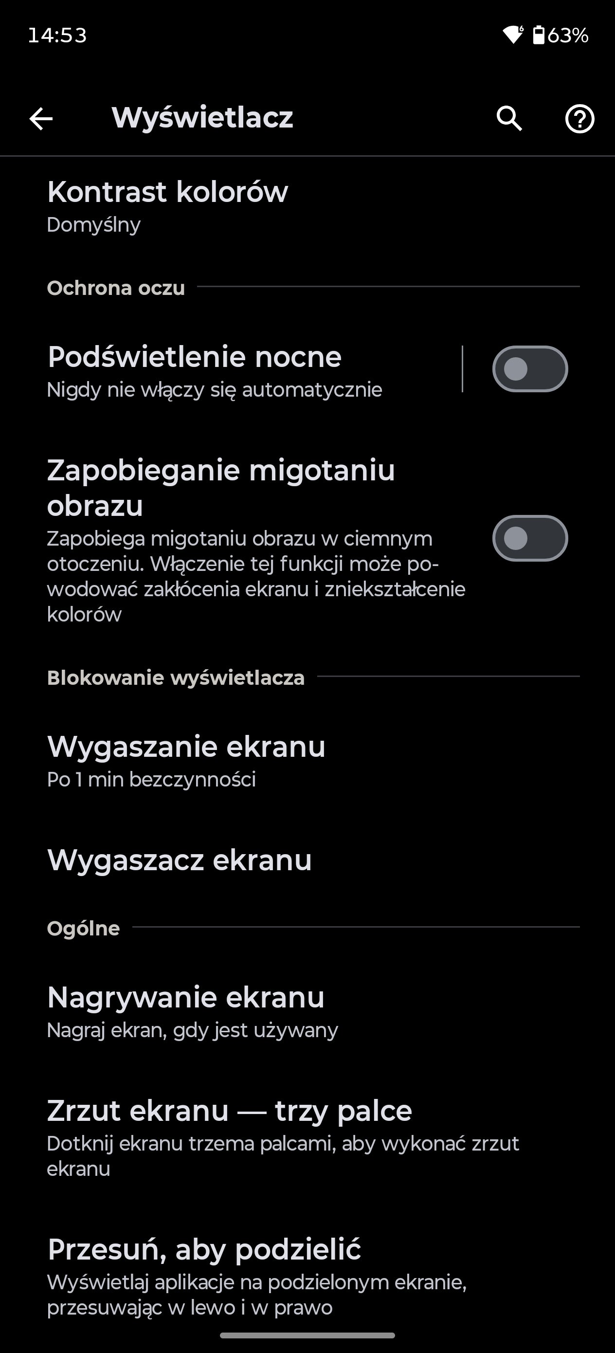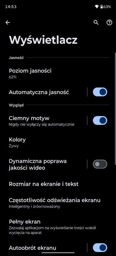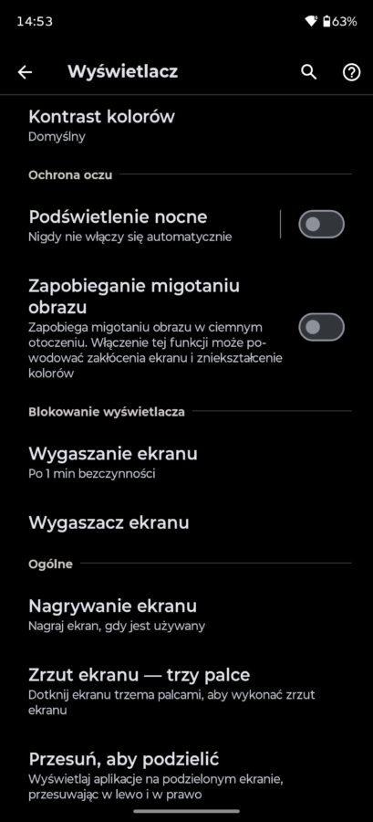 Nie zabrakło także funkcji Always On Display, tu nazwanej – po prostu – Ekran zawsze włączony, choć jest ona nieco schowana w opcjach ekranu blokady. Niestety, nie ma możliwości ustawienia harmonogramu, zatem AoD pokazuje się na stałe i gaśnie tylko po włożeniu telefonu do kieszeni lub odłożeniu go ekranem do dołu.