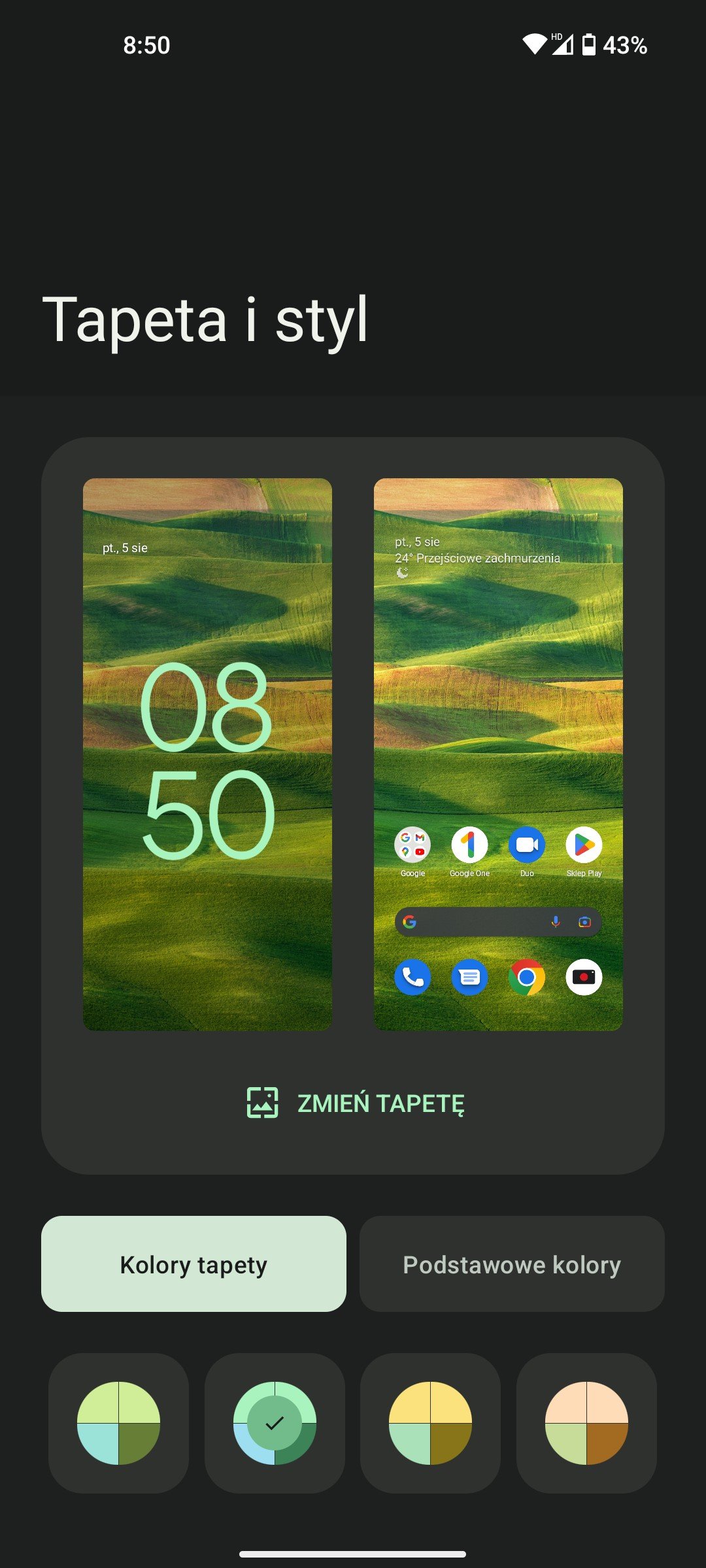 To, co rzuca się więc od razu w oczy, to zupełnie odmieniona szata graficzna systemu względem wcześniejszych wersji Androida. Material You jest tutaj obecne i pozwala istotnie wpłynąć na estetykę nie tylko ustawień czy paska powiadomień, ale także części systemowych aplikacji. Osobiście jestem ogromnym fanem tego rozwiązania. Kolorystyczna spójność w istotnym obszarze oprogramowania znacząco poprawia odbiór urządzenia.