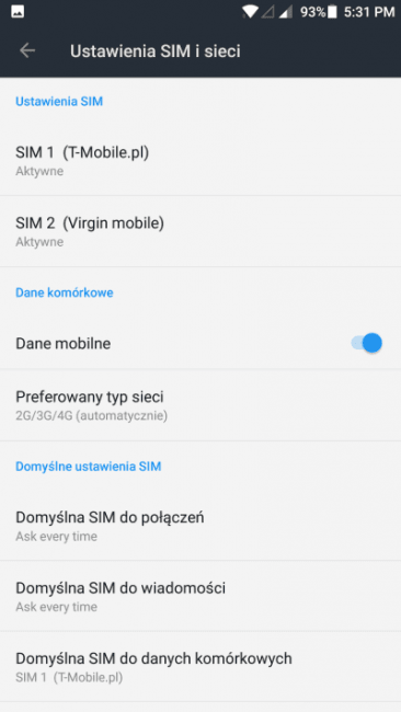 - dual SIM: dwa osobne sloty kart nanoSIM; dual SIM nieaktywny,